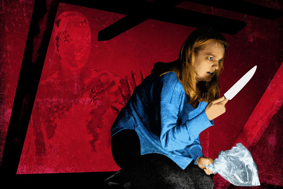 This early-ish section of The Invisible Man, which shows Cecilia trying to rebuild her life while suffering fleeting, hair-on-her-neck feelings that she’s being observed, is pressurized because of the hypothetical ambiguity about what’s really going on—whether the cause of her anxiety is a poltergeist, a memory, or Adrian in some kind of man-who-wasn’t-there disguise. In a way, it’s a shame that Whannell decided to work explicitly with the title and iconography (though obviously not the plot) of Wells’s novel, since it removes any real sense of ambiguity; in return for this sacrifice, though, The Invisible Man plays skillfully with our knowledge—and terror—that Cecilia is never actually alone. Whannell’s ability to not only compose shots that allow for the possibility of an unseen presence but then move the camera in ways that activate screen space displays the directorial chops that were obvious in his gory sci-fi thriller Upgrade. Despite its low budget, this is a beautifully made movie, nicely blocked and sculpturally lit in ways that allow a little bit of CGI to go a long way. At least one subtle, blink-or-miss-it scare proceeds to the hall of fame: an image of Cecilia taking a long, deep breath on the porch, her exhalation visible in the night air and then doubled a few inches from her head by whoever is standing imperceptibly beside her.