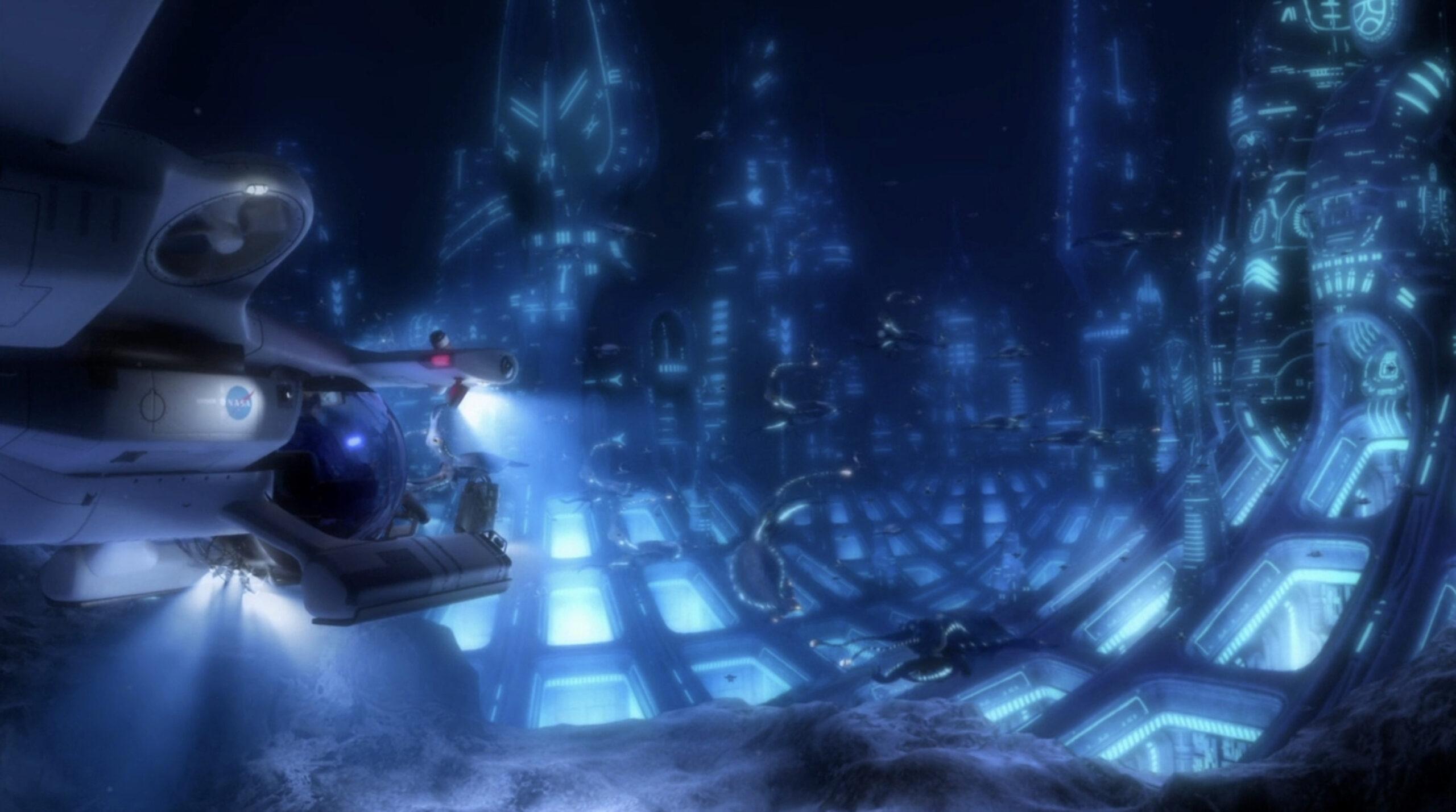 In the documentary, Cameron is somewhat dismissive of some of the ideas and research he’s presented with—namely the theory that microbial life could exist on Europa, a moon of Jupiter that has a subsurface ocean. At one point he straight up presses a NASA scientist, who definitely has a PhD in this area, to imagine more sophisticated extraterrestrial lifeforms that mankind could communicate with. Anything less just isn’t cool enough. So Aliens of the Deep ends with Cameron creating this bizarre piece of fan fiction where a NASA space submarine (?) makes contact with an alien race on Europa that apparently has a Tron: Legacy–like aesthetic.