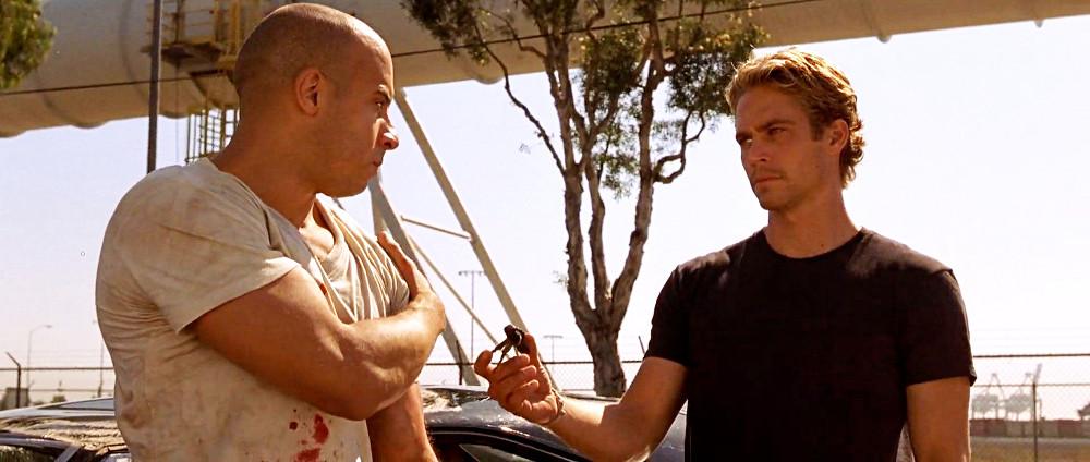 Brian O’Conner is, technically, our first proper protagonist, and the first person in the franchise to switch teams. An undercover detective assigned to the car-racing underworld to suss out the particulars of a DVD player theft and resale racket, Toretto is his mark. But when Brian races Dom for the purpose of integration and research, he loses and ends up on the wrong end of an iconic, razzing monologue. Dom accuses Brian, beside his smoked-out car, of “granny-shifting, not double-clutching like you should,” which the crowd loves. The conviction of the monologue, which really does get quite mechanically specific, seems to open an ethical dilemma within Brian.