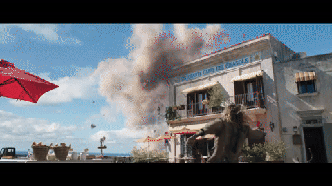An interesting (and somewhat unexplained) feature of Atlantean biology is that members of royal bloodlines—for example, Orm and Mera—can survive on land, while common folk are able to breathe only underwater. It adds an element of danger for Orm’s soldiers in their pursuit of Arthur, and in the case of Captain Murk (Ludi Lin), the leader of Atlantis’s men-of-war—I see what they did there—it prompts a moment of indignity. After Murk apprehends Mera in Sicily, she springs a major leak in his suit, leaving him with mere seconds to save himself. He reacts accordingly: