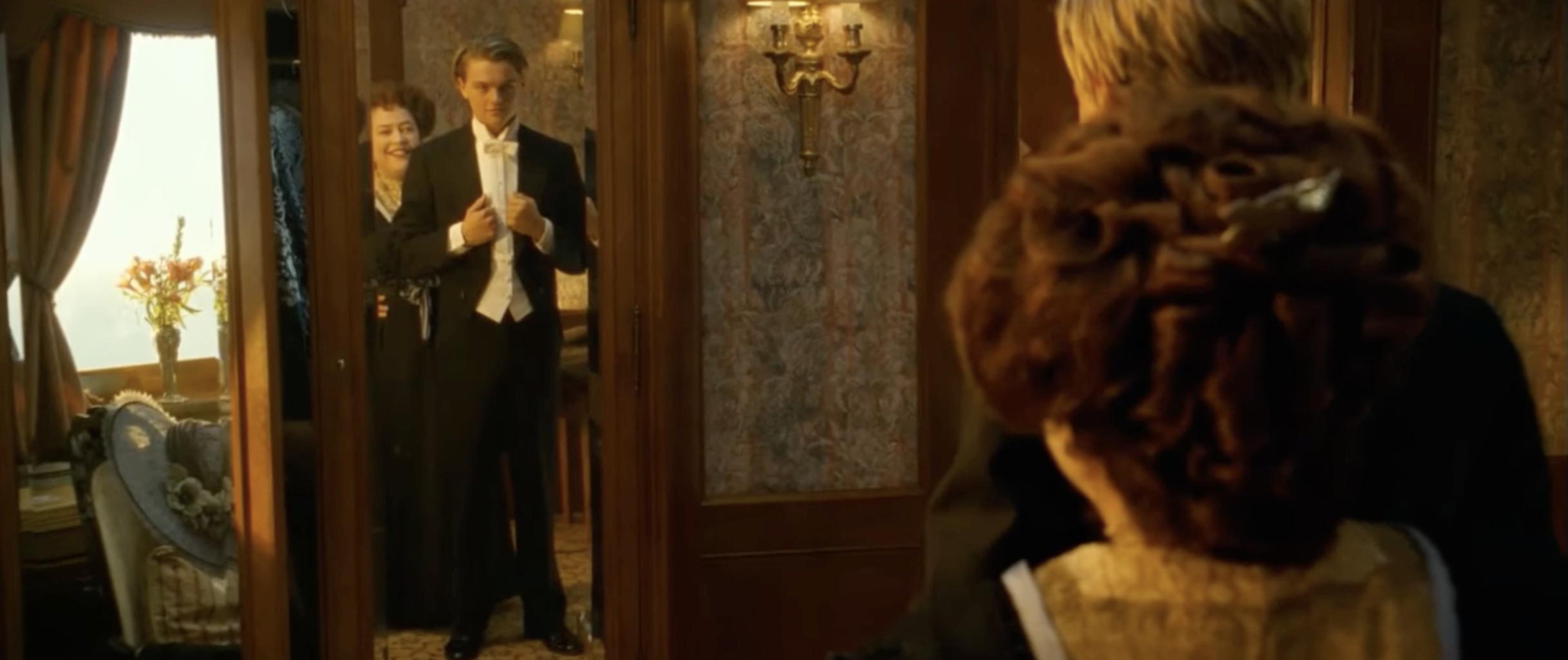 While almost all the first-class passengers introduced in Titanic are insufferable snobs, one worthy outlier is Molly Brown (Kathy Bates). Looked down on by other elites because she comes from “new money,” Molly is no stranger to the disdain Jack will face after being invited to dine in first class for saving Rose’s life when she nearly jumped off the ship. Knowing that Jack wouldn’t be properly dressed for the occasion—a perfect opportunity for the wealthy passengers to judge him—Molly lends him one of her son’s suits. Unsurprisingly, Jack looks mighty spiffy in it: