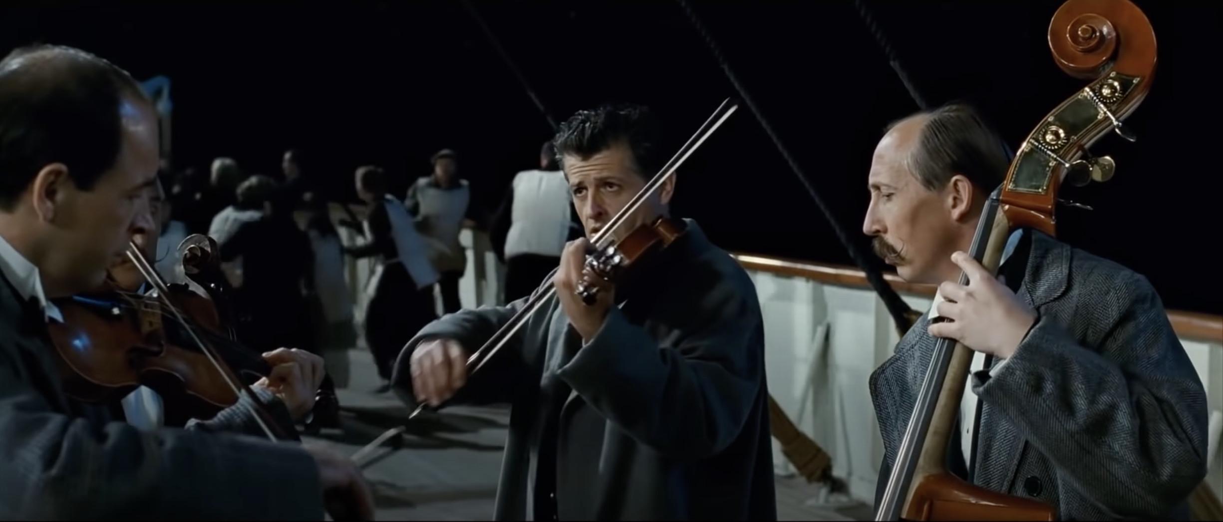 Maybe the only true story more inspiring than the drunken chef who survived the frigid Atlantic waters is the fate of the Titanic’s eight-member band. Led by Wallace Hartley, who was portrayed by Jonathan Evans-Jones in the film, the band continues to play music as the ship sinks in an effort to keep the passengers calm—including, by most historical accounts, the Christian hymn “Nearer, My God, to Thee.” The bravery of the band playing into their final moments is treated with appropriate gravitas by Cameron, contrasting the solemnity of the music with the chaos surrounding the men: