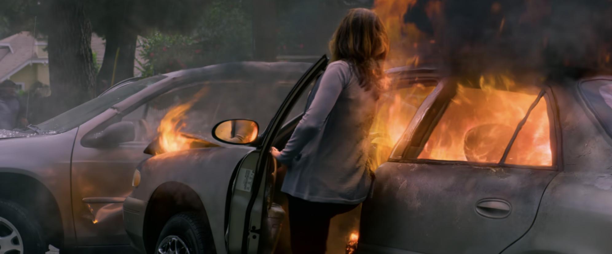 Then Douglas (John Malkovich) watches his wife casually enter a vehicle that’s engulfed in flames before it explodes with her inside it.