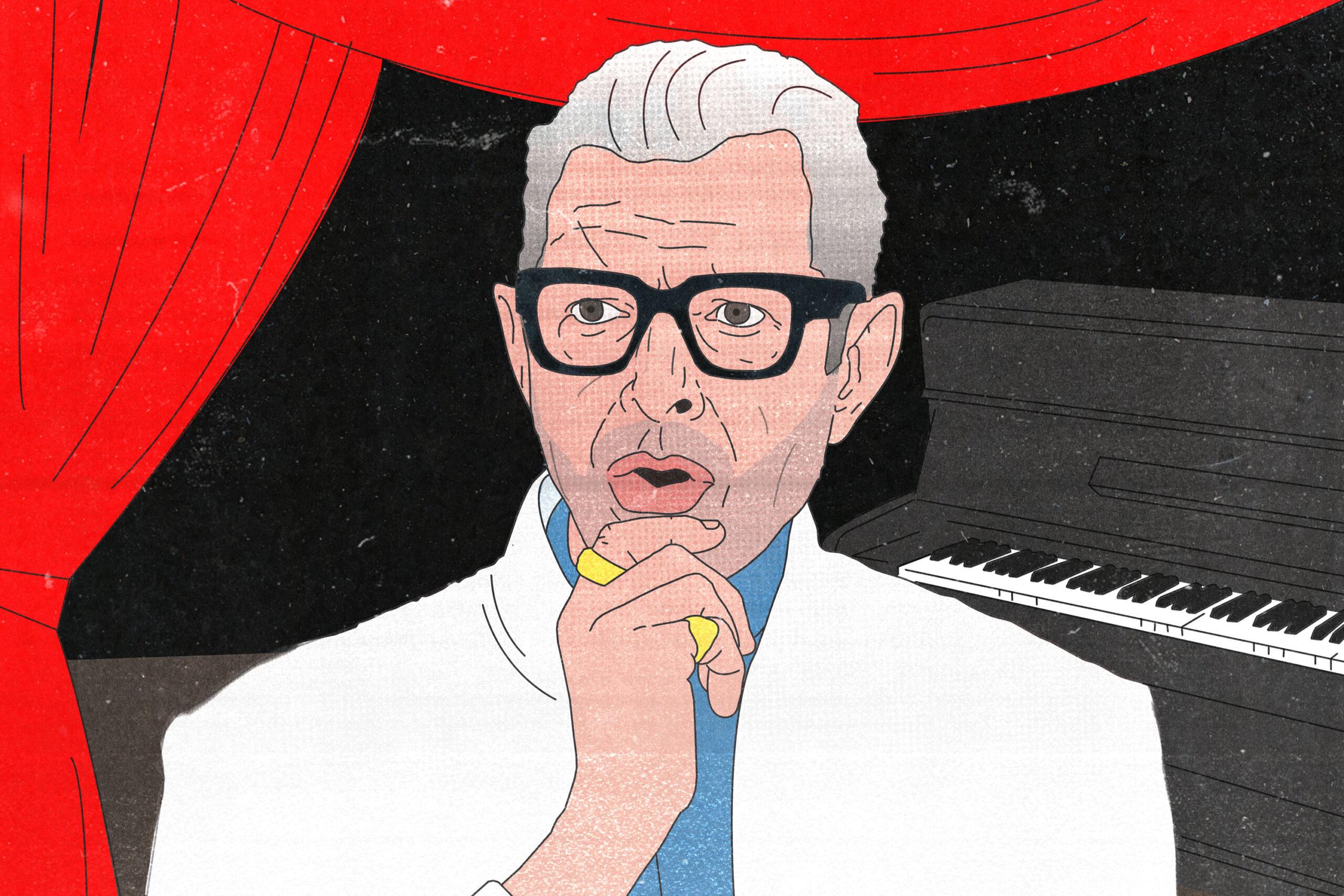 Goldblum plays piano. When, at 17 years of age, he first fled his ancestral homeland of West Homestead, Pennsylvania, he landed in New York City with both actorly and musical aspirations. It just so happens that he nailed his first acting audition, for 1974’s Death Wish, winning the coveted role of “Freak #1.” (Think Adam Driver’s bug-eyed menace, just with way less muscle tone.) Long before he became an object of intense internet fascination, a loopy muse for knuckleheaded memes and myriad tattoos and at least one giant statue in London, he was an oft-fleeting but alarmingly vivid presence in big movies with prestige directors. Goldblum is like Gritty the lovable hockey mascot and blank ideological canvas, except if Gritty had worked with Robert Altman, Woody Allen, Roland Emmerich, Lawrence Kasdan, Wes Anderson, and Steven Spielberg.