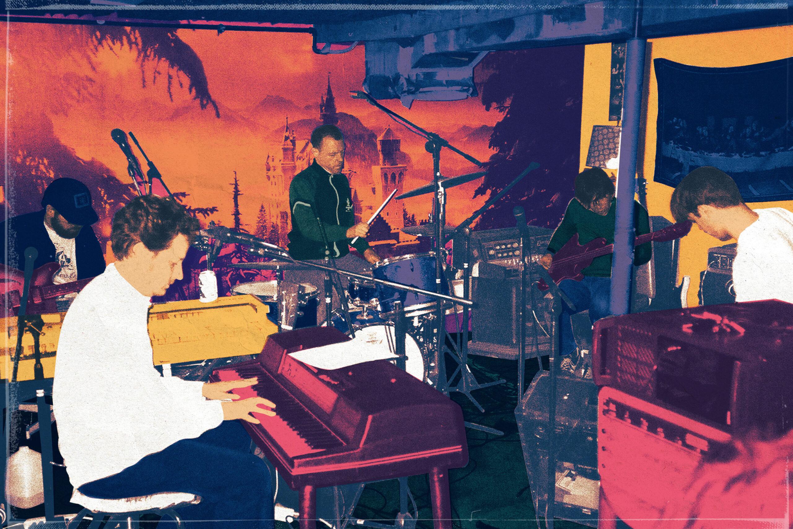 They had tried this before. Some four or five years earlier, McGee, Levy, and DiPatri had been summoned to Chicago by Finn, who was then fulfilling mail orders for local record label Drag City. There, the well-acquainted quartet teamed up with Damon Che of regional prog giants Don Caballero, who wouldn’t be the last accomplished drummer to fall under the charming spell of the gregarious Finn. Within Finn’s second-floor apartment, they recorded an album under the name of the Buzz Buzzers. Naturally, these recordings were never finished, and the whereabouts of the master tapes are now unknown. Regardless, a template had been set by which the childhood chums could steal the odd few days of increasingly rare quality time under the pretense of “productivity.”