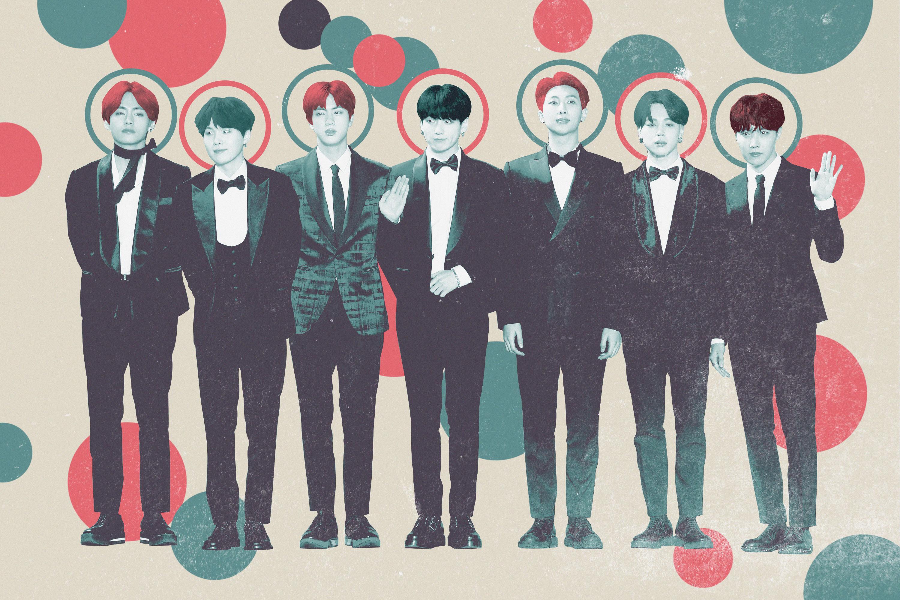 Over the past few years, K-pop group BTS has staged a steady takeover of the music scene, introducing Americans to a world of vibrant, ever-changing, sometimes blinding array of color. The ascendance has accelerated in recent months with an appearance on the Grammys and an Entertainment Weekly cover, and will reach a peak this weekend with the group’s appearance on Saturday Night Live and the release of their new album, Map of the Soul: Persona. With all this new music and various public appearances comes a new look for BTS, highlighted by pink suits, pastel filters, and, as has become their calling card, brightly colored hair.