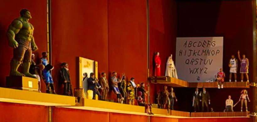 17. The apparently Devs-themed “studio lounge” features a collection of action figures. Among those identifiable: multiple Shaqs, Steph Curry, Kevin Durant, Kobe Bryant, Bruce Lee, Joaquin Phoenix’s Joker, Jared Leto’s Joker, Margot Robbie’s Harley Quinn, Deadpool, the Incredible Hulk, and … the Men in Black?