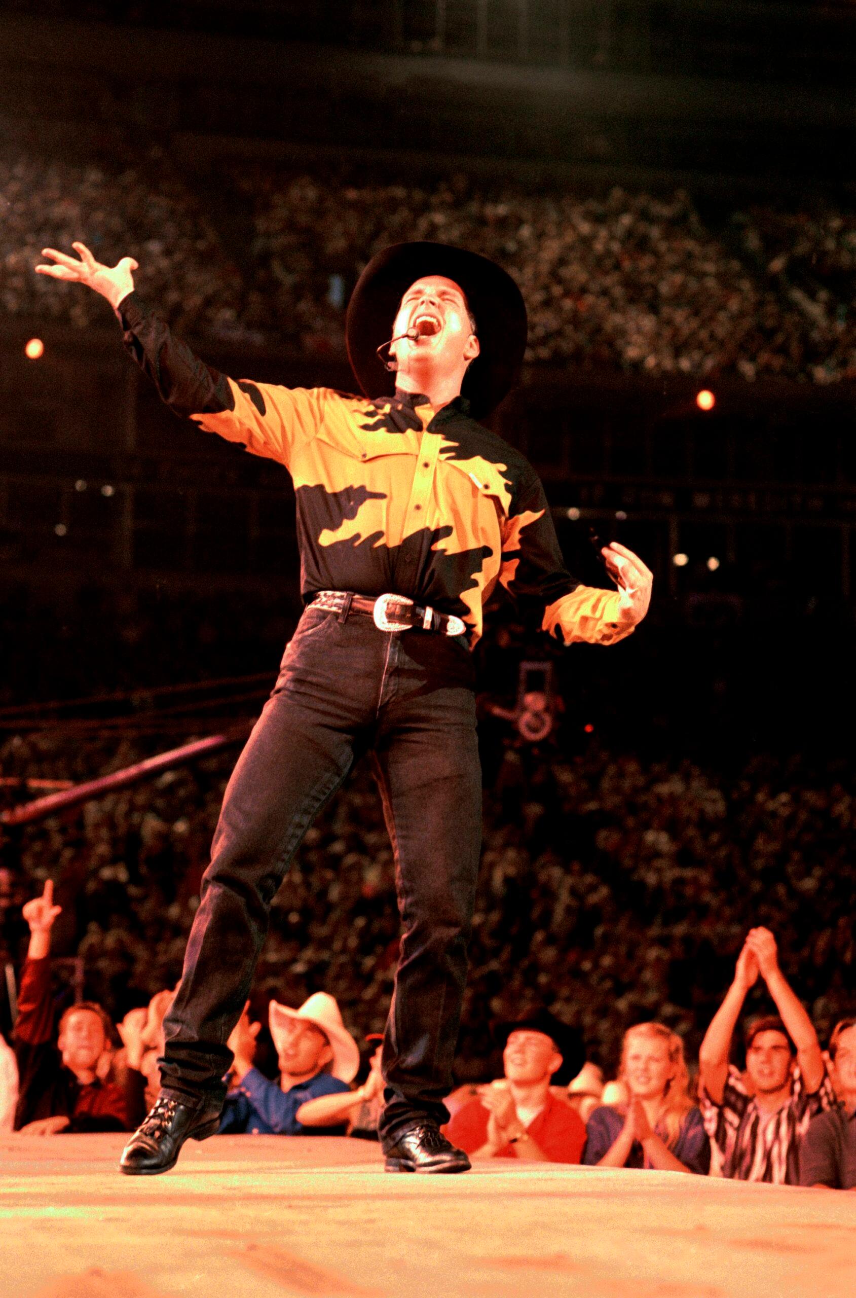 Garth Brooks is the second-bestselling musical act of all time in the United States, behind only the Beatles. He’s the only guy ever with nine diamond albums. And people come out to see him over and over and over. If you love Garth, you love Garth. He keeps his tickets cheap and his fans loyal; sells out arenas in minutes. He is the All-Time Big Kahuna of Country Concert Performers. He throws smoke.