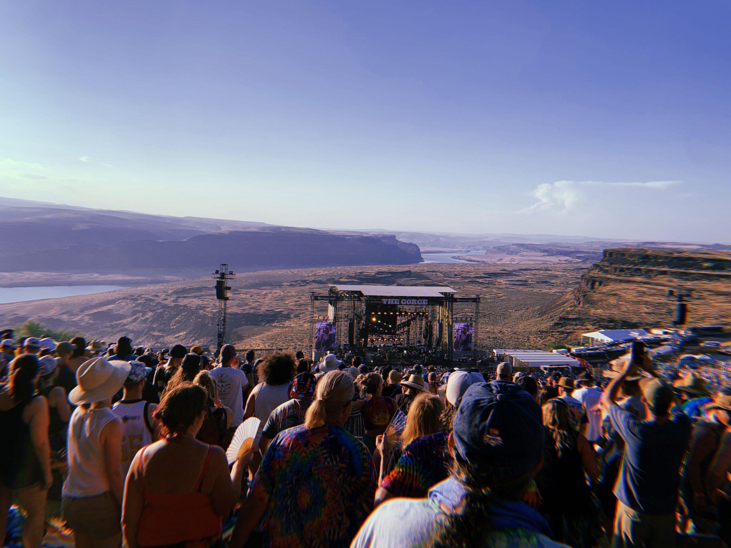Other than the surprisingly robust cell service, there is nothing convenient about the Gorge. It’s literally in the middle of nowhere, equally remote from Seattle and Spokane. Getting in Thursday night takes three hours owing to increased security. The campsites, where thousands of Deadheads are posted up from Thursday night through Sunday morning, are a rugged mile or so trek from the entrance to the amphitheater itself. Even though the venue is nearly 40 years old, there are no permanent bathrooms.