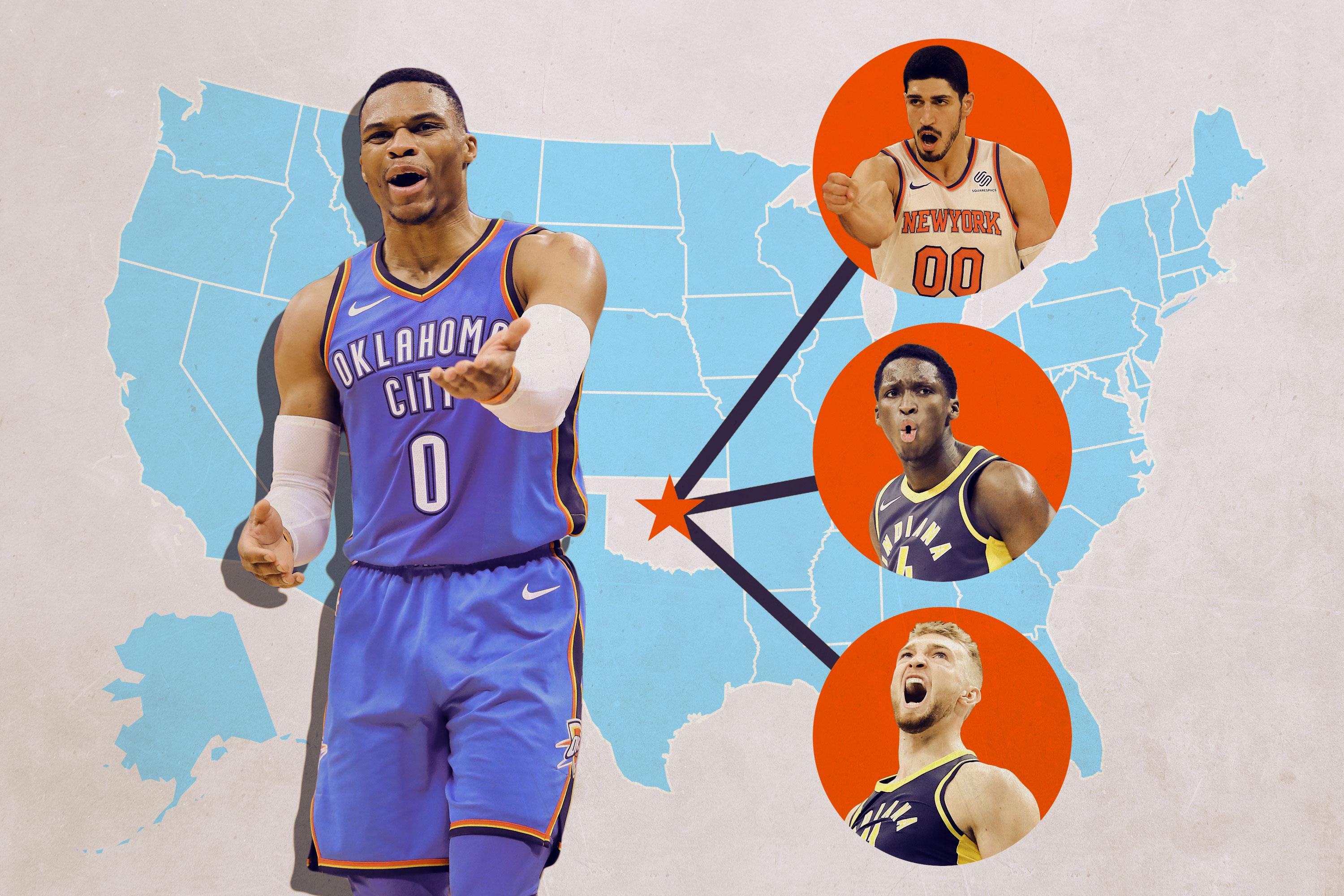 The timely homecomings for the other two stars pose two-way revenge story lines, as the Thunder will face a group of players they cast aside over the summer and see up close the talent they failed to develop and integrate themselves. Oklahoma City traded Oladipo and Domantas Sabonis to Indiana for George and Enes Kanter as part of its package for Anthony. But in a twist, the trio of OKC expats is outperforming the Thunder’s new Big Three: By player efficiency rating, Oladipo is having a better season than Russell Westbrook, Sabonis a better season than George, and Kanter a better season than Anthony.