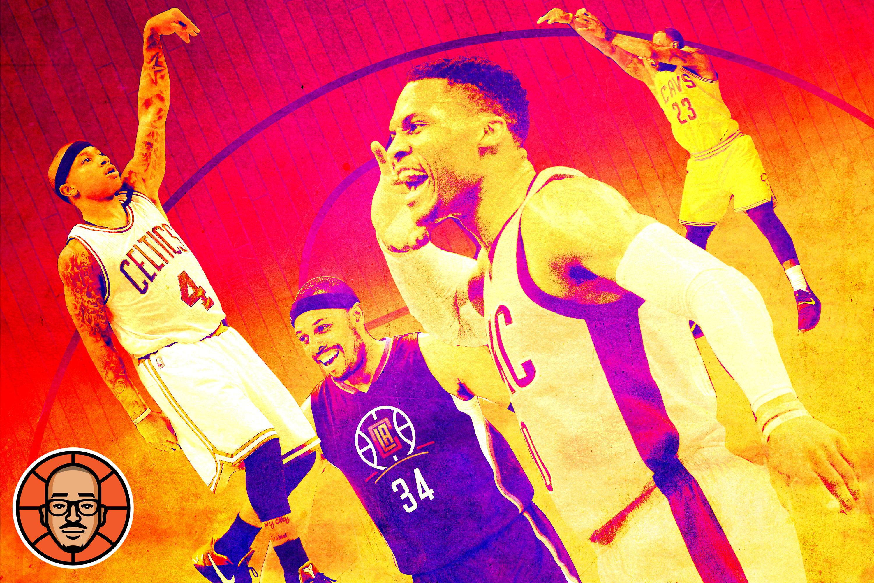 The second-most “That was too emotional” 3: This one belongs to Paul Pierce, who checked into the Clippers-Celtics game at TD Garden with about 20 seconds left just so the Boston fans could have one final goodbye. Rather than play the string out, though, he decided he’d get a shot up. It was a 3. It dropped in, everyone lost their mind, it was excellent. (The first-most “That was too emotional” 3 was the one my beloved Isaiah Thomas hit at the start of Game 1 of the Bulls-Celtics series following the death of his younger sister.)