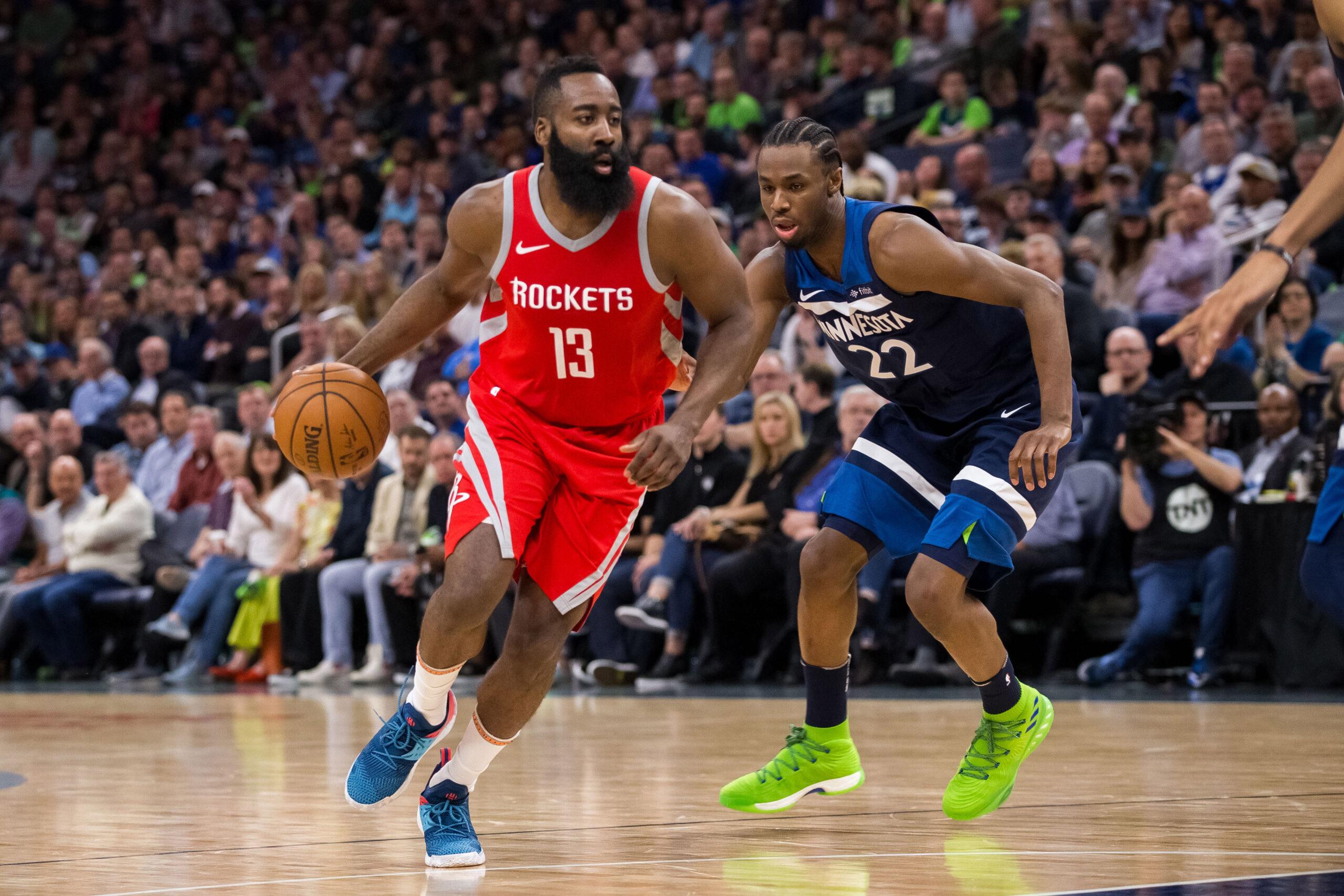 The Wolves’ first field goal of the quarter didn’t come until the 8:49 mark. When they finally scored, Harden responded with a stepback jumper. Wolves boss Tom Thibodeau finally called a timeout. It didn’t work. Harden returned by making a six-foot runner and a 24-footer for three more. All while being guarded by Jimmy Butler. The quarter wasn’t even halfway over and the Rockets already led 68-54. Harden added another layup, taking it right into Towns’s front yard and bodying him out of it as if Towns were just a misplaced piece of lawn furniture.