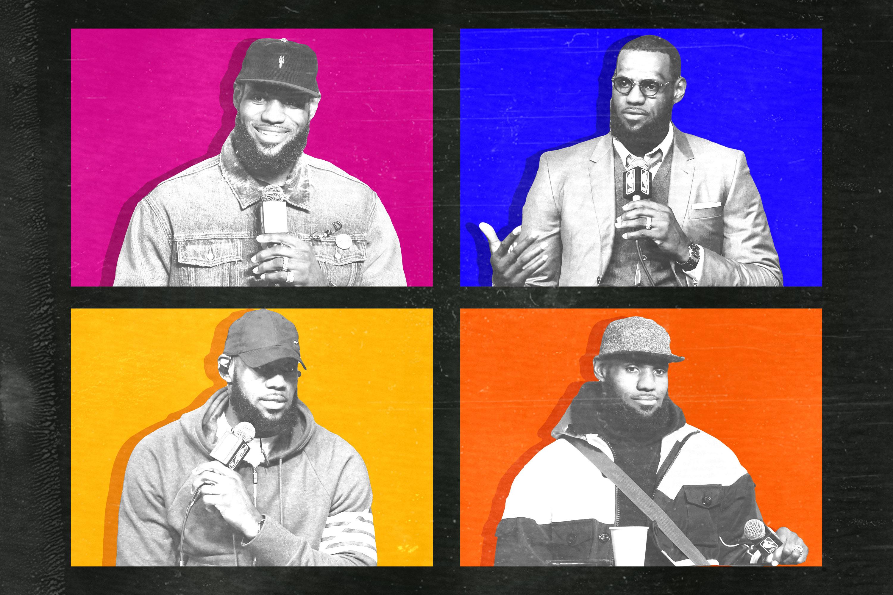 The podium thus becomes the site of the player’s “official”—which is to say, unenlightening—answer. In the locker room after a 2016 Finals game, James was pissed about the refs missing a call against Steph Curry. Lloyd told James he was going to ask him about the call in the press conference. OK, James said, but by then I’m going to have settled down. Sure enough, when the camera phones were rolling, James was the face of diplomacy.