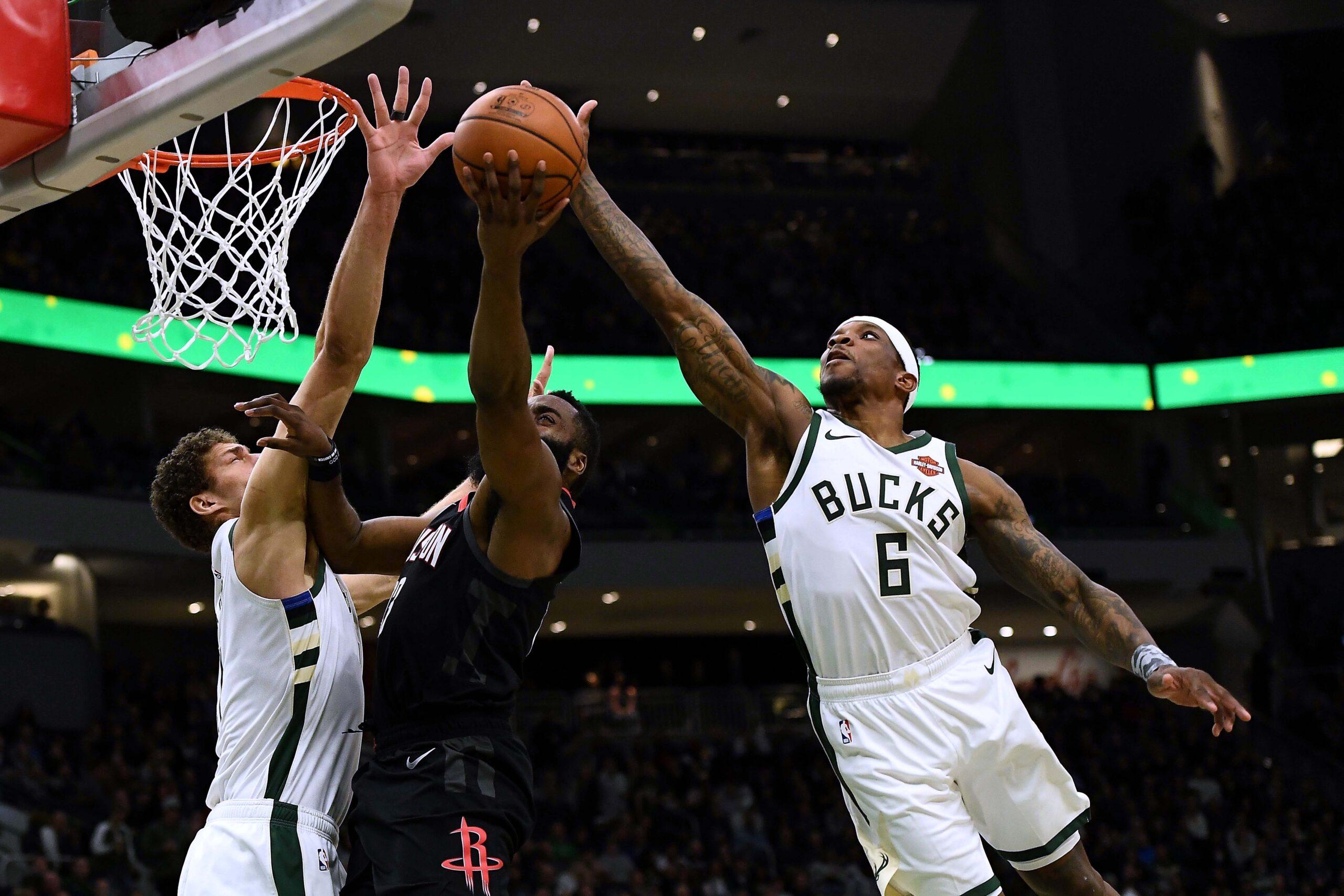 Indeed, these Bucks are not the 2012-13 Clippers, who were eliminated in the first round, and Bledsoe isn’t a backup. He limited reigning MVP James Harden to 23 points on 9-for-26 shooting (1-for-9 from deep), and, even more telling, Harden made it to the line only five times, well below his average of 11.0 trips per game.