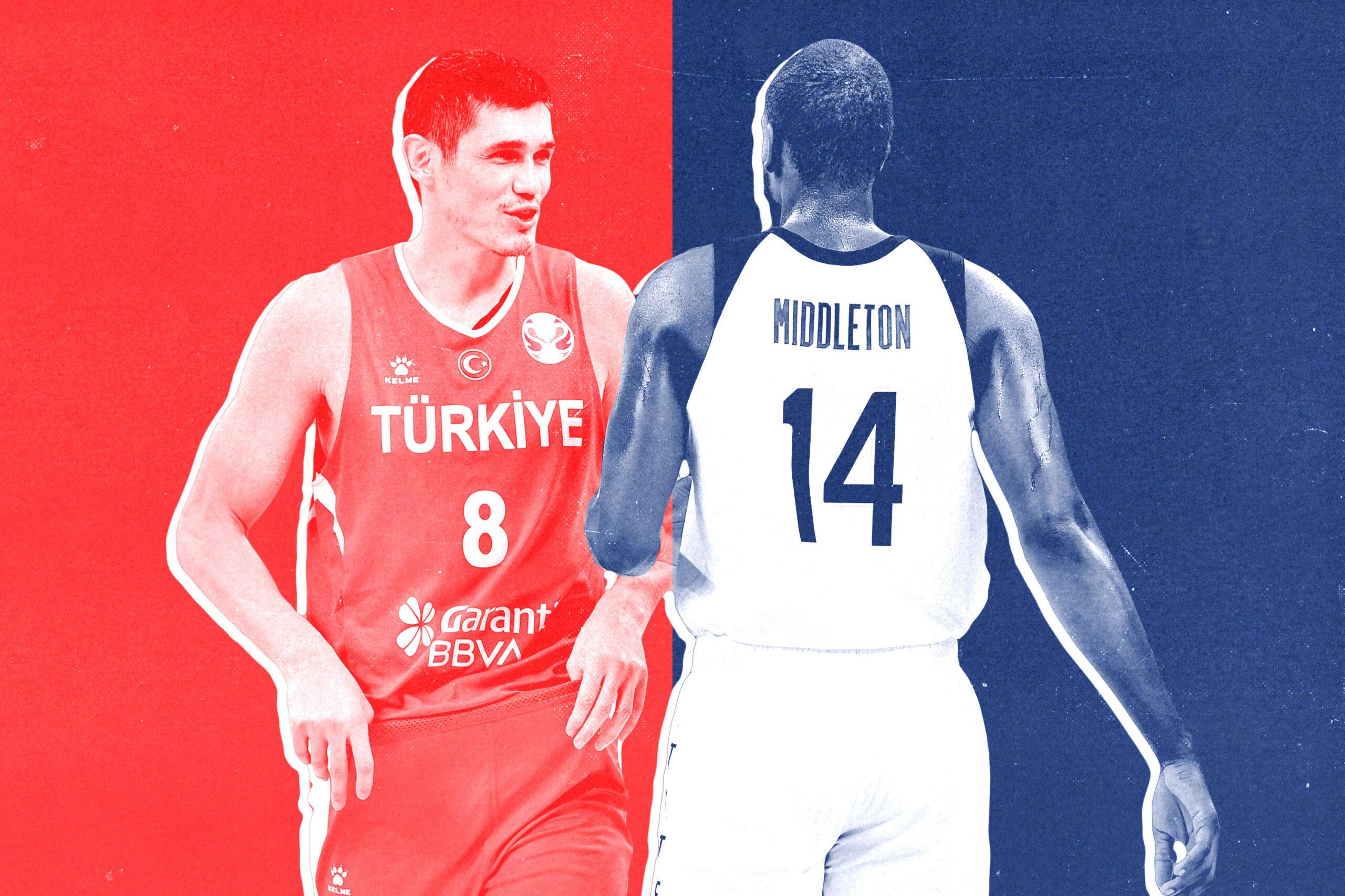 Popovich has spent the first two games searching for those answers. The best five he found on Tuesday came, briefly, late in OT: Turner in the middle, Walker at the point, and Harris, Tatum, and Middleton on the wings. It’s a lineup that maximizes shooting, keeps a legitimate big in the mix to clean the defensive glass and protect the rim, and gives Walker the screen partner and runway he needs to create off the dribble. It’s also one that didn’t include Donovan Mitchell, who missed nine of his 12 shots against Turkey and made some costly mistakes—like committing the blind-pass turnover that led to Ilyasova’s go-ahead putback late in the fourth quarter, and grabbing the rim while soaring in for an offensive rebound late in overtime, drawing a goaltending violation that knocked a Turner putback off the board with the U.S. down by one.