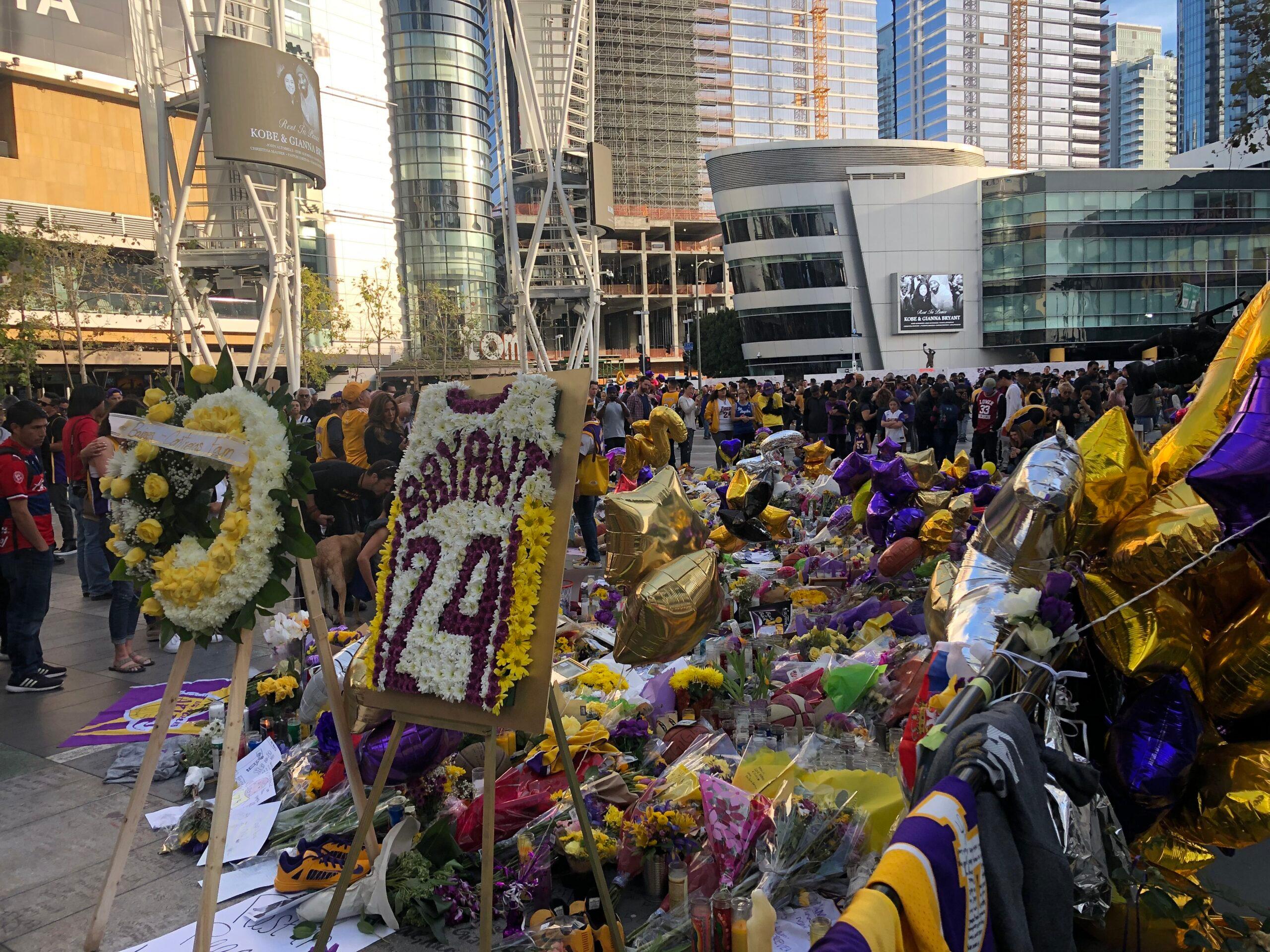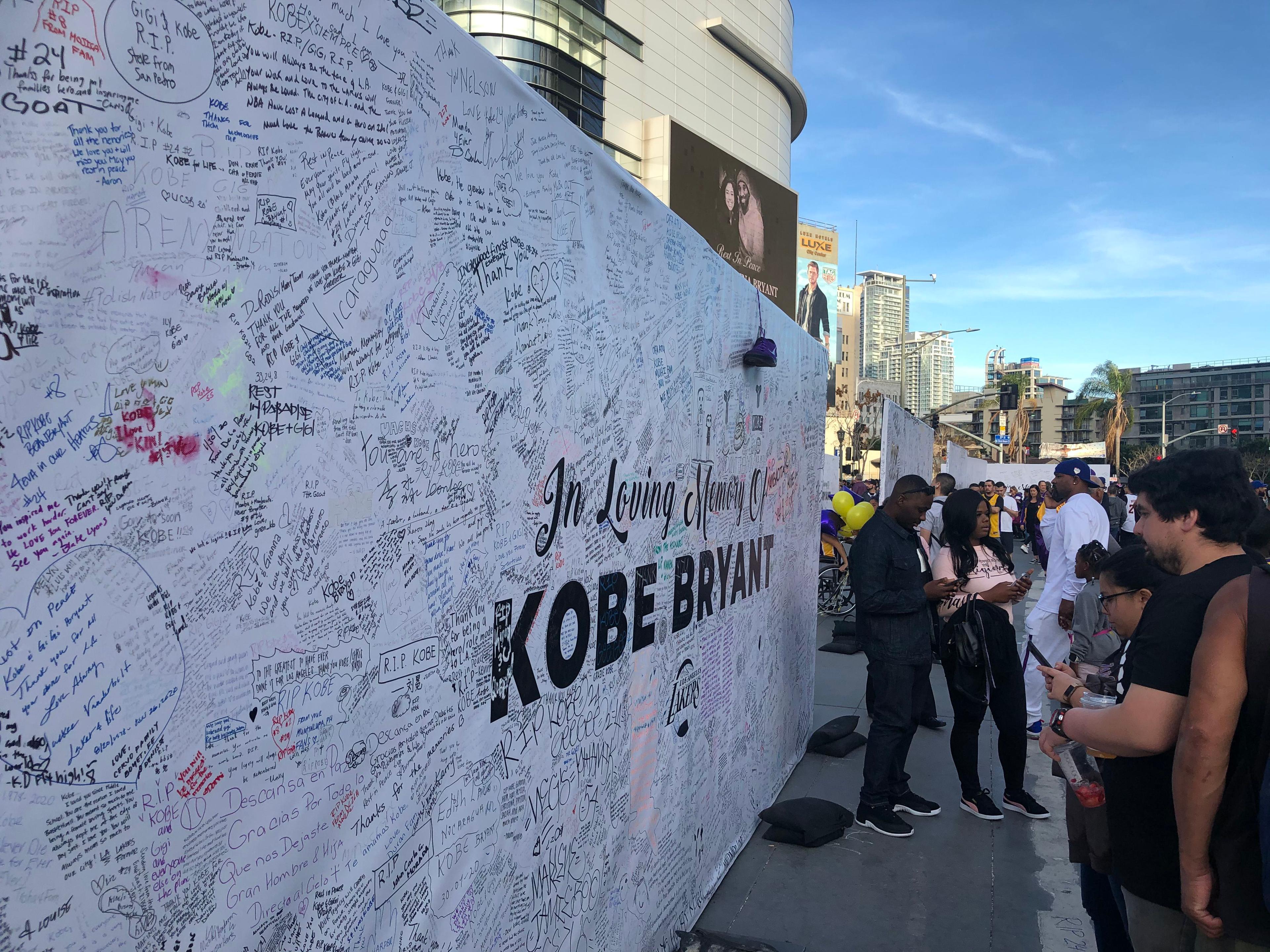 Over the preceding six days, shock turned into grief, which by Friday had turned to somber remembrance. And throughout this emotional evolution, Staples Center has become a mecca where fans from all over Southern California have flocked to honor Kobe and the rest of the victims by placing their own mark on an ever-growing memorial.