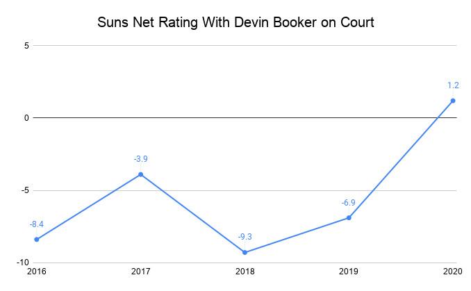 Yet Booker has also averaged 26-plus points and six-plus assists in each of the last two seasons. Harden is the only other player to match that feat, and every other player who’s done it even once is an All-Star. This season in particular, Booker has seemed to take a step forward in his understanding of and feel for the game. The Suns finally have a positive point differential with him on the floor, after seasons of subpar play.