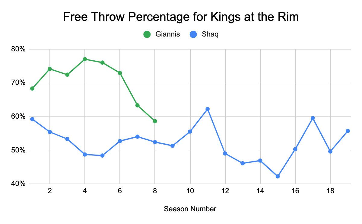 Giannis might need his own Kobe for the Bucks to thrive in clutch moments, too. This comparison is extra relevant now, as Giannis’s free throw performance is approaching Shaq territory, too.