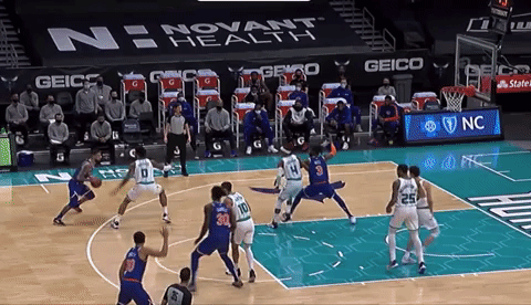 With less than two minutes left in the first quarter of January 11’s Hornets-Knicks game, Austin Rivers scored a routine layup. As the ball rippled out of the net, LaMelo did not let it fall more than a few inches before tapping it to himself, stepping briefly out of bounds, and pushing it forward to Devonte’ Graham. Suddenly, out of a made basket, Ball had manufactured a Hornets fast break.
