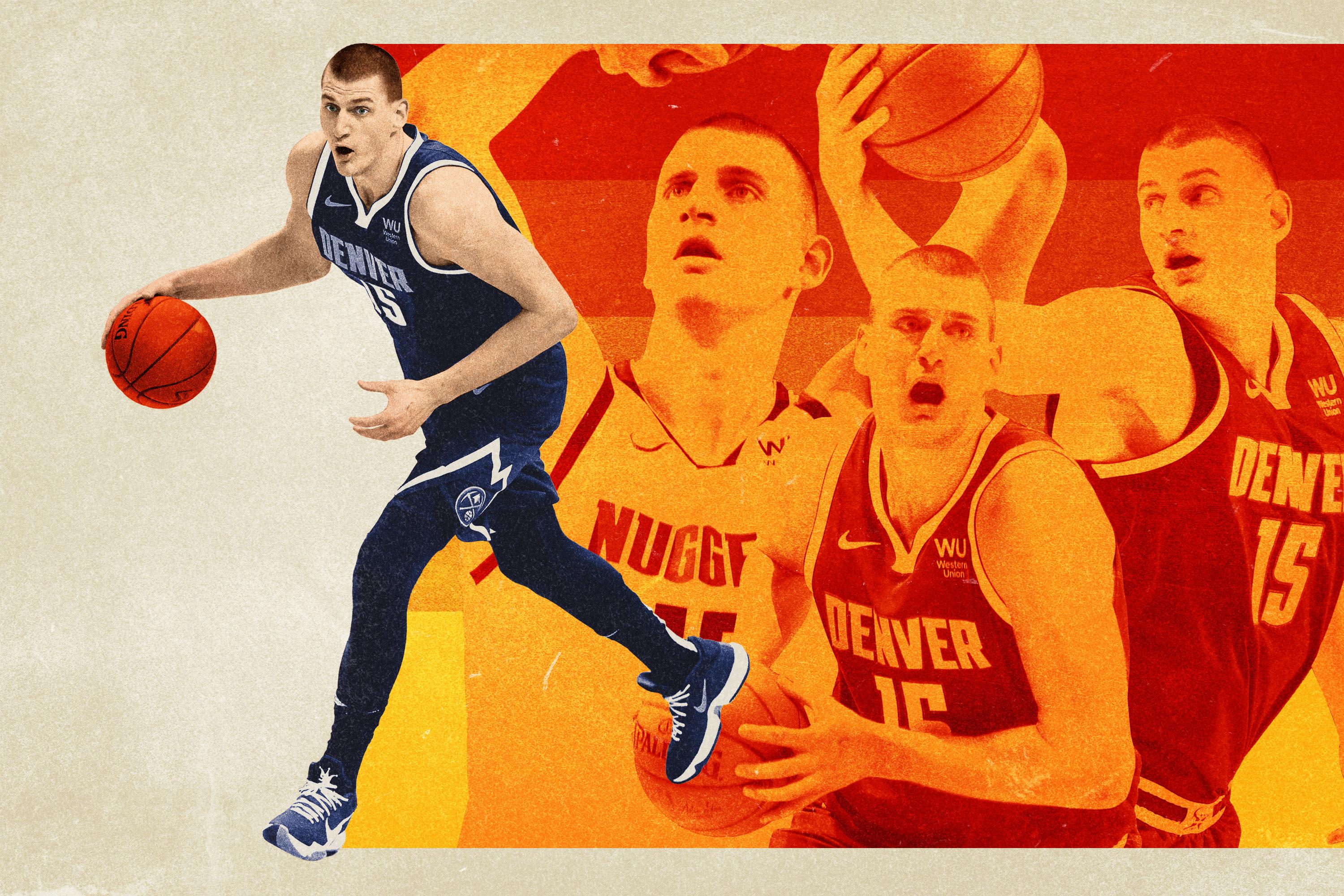All that shuffling and tinkering has forced Jokic into a more universal role on a possession-by-possession basis. He has orchestrated offense from the elbow more frequently than any other player in the league, sprung teammates with big-bodied screens at a top-10 rate, and thrown more passes per game—90-foot outlets, 2-foot touch passes in traffic, and everything in between—than ever before. He’s worn the heavier burden lightly, boosting his scoring average, usage rate, and overall efficiency—an awfully difficult trick to pull off, the hallmark of only a precious few offensive players in the world. When Jokic is in the game, Denver scores at a rate that would be no. 1 in the league. When he sits, the Nuggets score like the 17th-ranked Bulls—one of the largest offensive efficiency differentials of any big in the league, according to Cleaning the Glass.