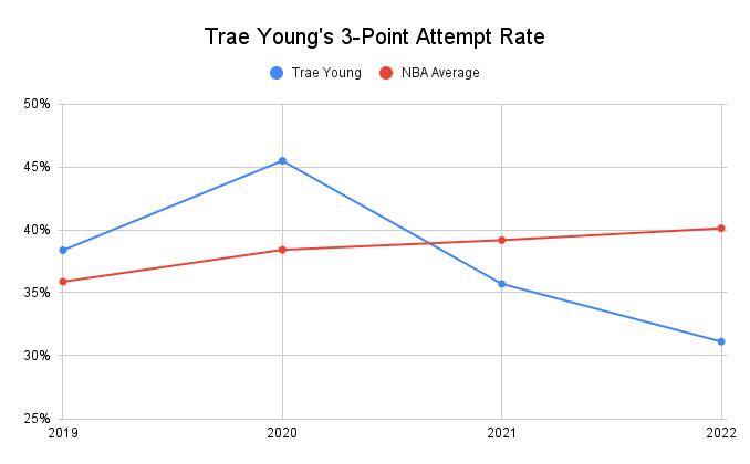 It’s worth noting that Young’s 3-point attempt rate increased to 40 percent in last season’s playoffs during the Hawks’ run to the conference finals. That doesn’t sound like a huge difference from where he is now, but when he’s attempting about 20 shots per game, that means two additional 3-pointers every night.