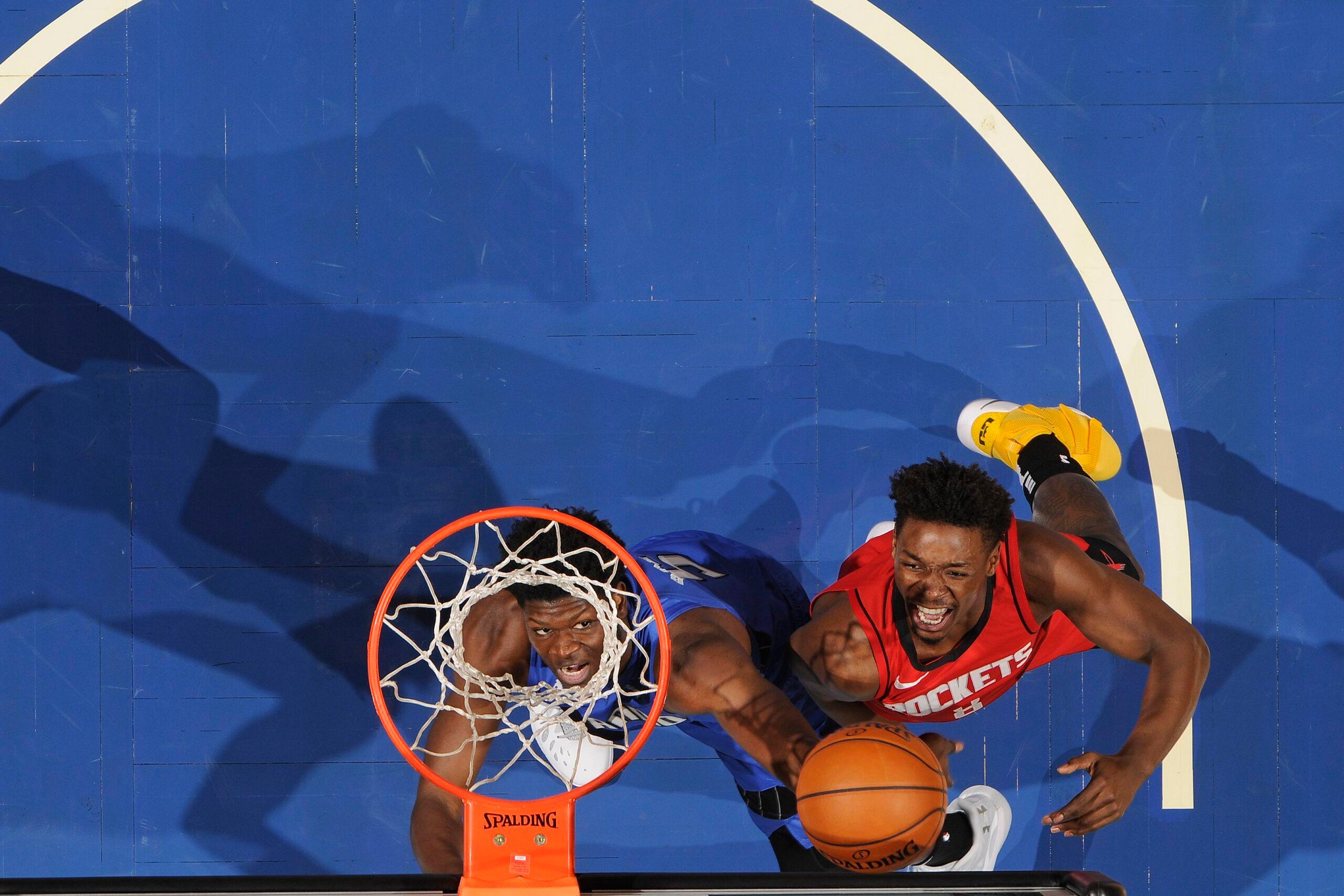 He prides himself on being a person who doesn’t quit on any possession. At 230 pounds, he aptly guards positions 1 through 5; he’s heavy enough to lock up bigger players and agile enough to stay in front of smaller ones. “Defensively, we feel comfortable with him guarding everyone,” says Rockets general manager Rafael Stone.