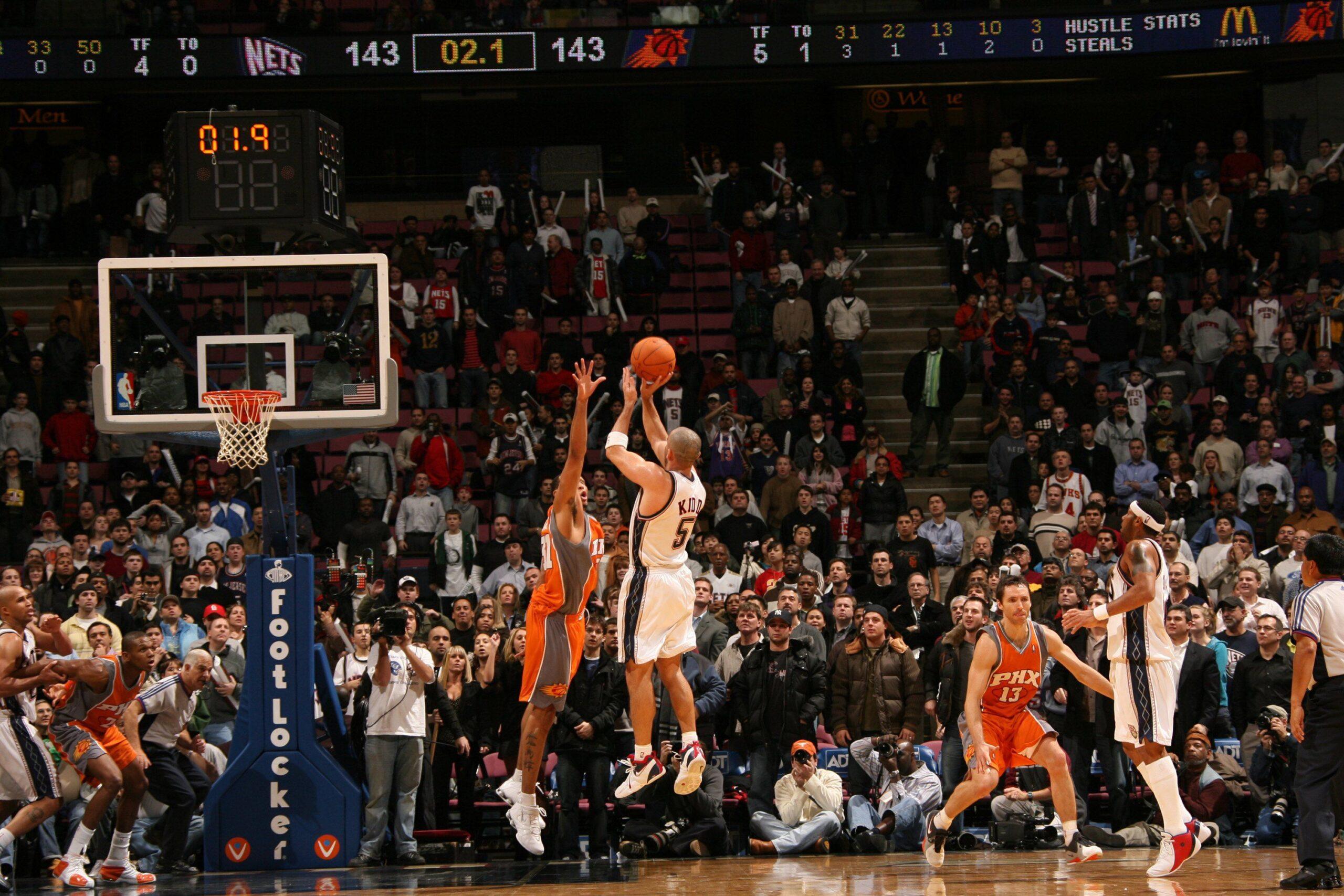 The Nets ranked 15th in scoring (97.6 points per game) during the 2006-07 season, but that night their sputtering offense came to life, running and gunning with the top-ranked Suns (110.2 PPG). Phoenix took a 10-point lead late in the second quarter, but New Jersey trailed just 92-90 heading into the fourth. The final period turned into a track meet, with the teams combining for 84 points. At one point, the two teams combined to make 10 consecutive shots. The Nets shot 16-for-21 from the field in the fourth, while the Suns went 7-for-10 from 3-point range. There were 17 lead changes and eight ties. Nash had 15 points in the quarter, while Vince Carter and Marcus Williams each scored 14, with Kidd adding nine. There was history, heroics, and everything else in-between.