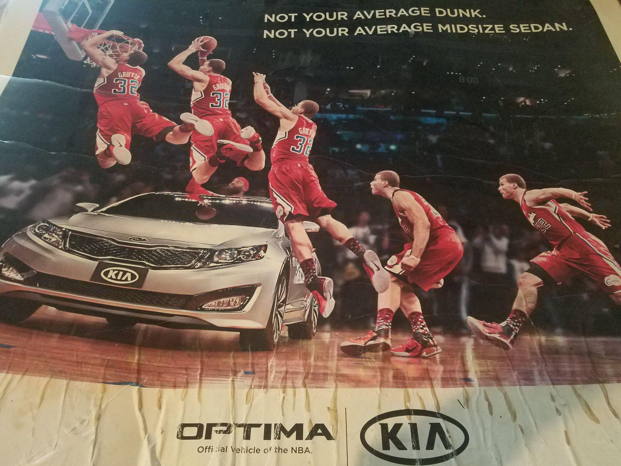As Griffin said on a podcast in 2016, his initial plan was to jump over the top of a convertible. He wanted Davis to be inside and toss the ball straight up to him as he flew overhead. But the league said it had to be an Optima, which was then the official car of the NBA.