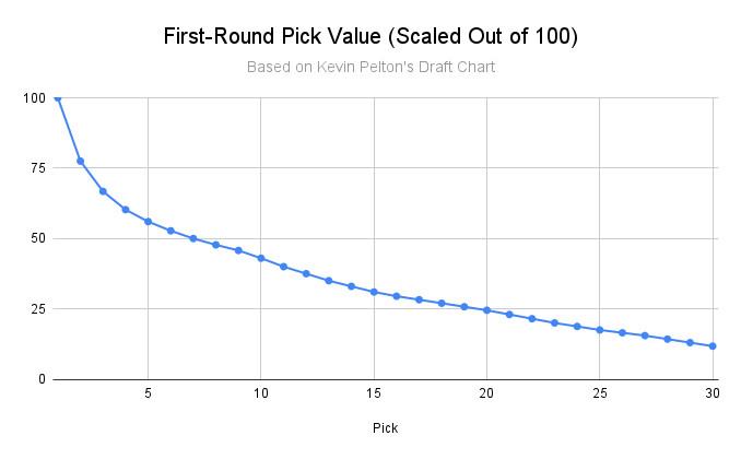 Still, that makes for only three times out of 31 that a swap gave a team the equivalent of a top-20 pick or better, using Pelton’s values as a baseline.