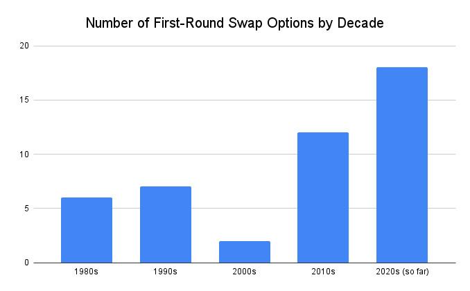 But as history demonstrates, that kind of jump requires a real outlier set of circumstances. Teams will likely keep trading stars for swap rights as the 2020s continue, but more often than not, those swaps will fade without much impact.