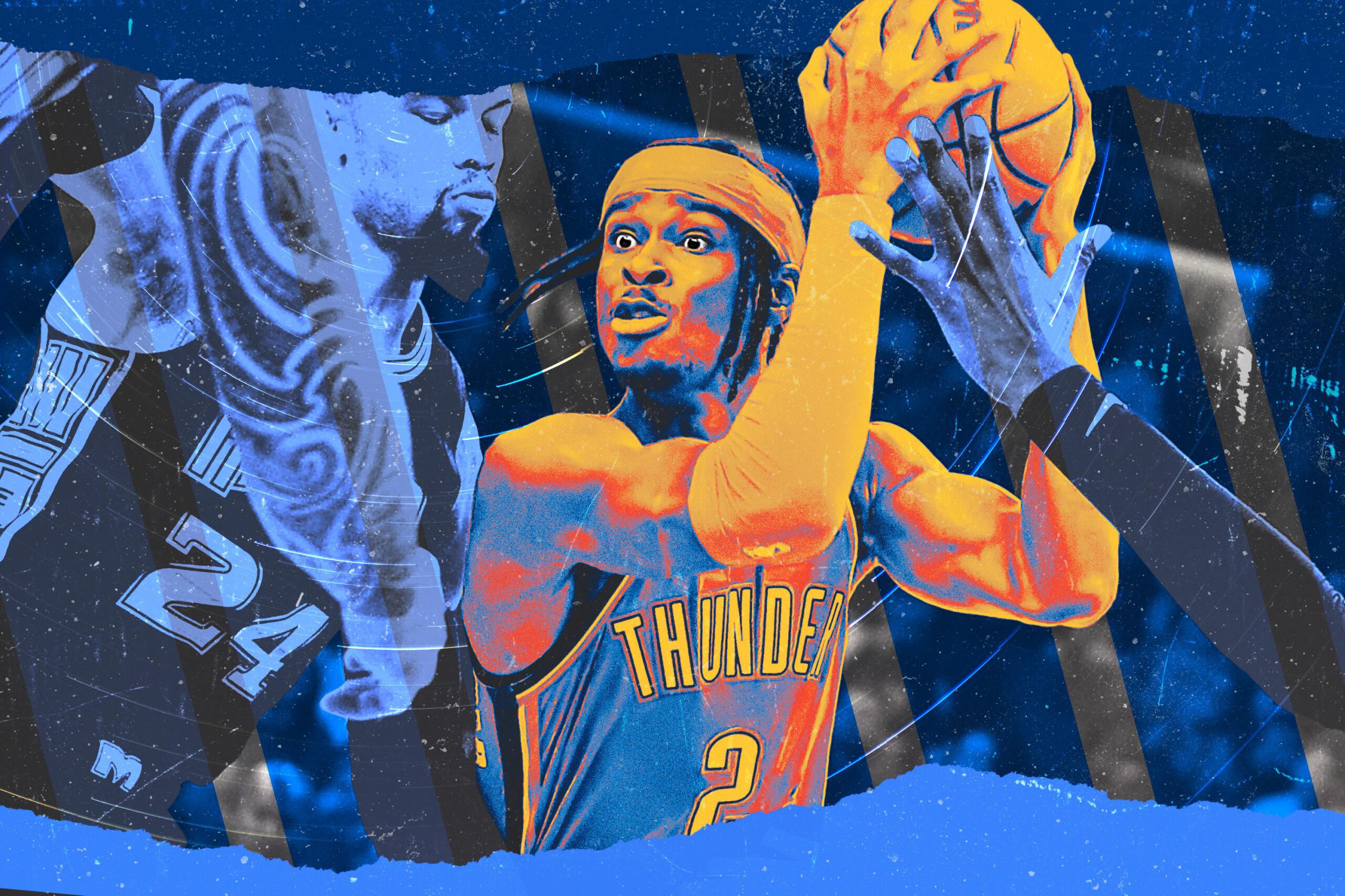 A strong flavor and style for days, Shai Gilgeous-Alexander is one of the most unique scorers in recent memory. As a ball handler, he makes his moves in the space between the beats. Keeps his stuff silky and distorted, the patron saint of deceleration, speeds up and slows down the frame rate on his drives, then uses his length to surge toward daylight and finish with style. Will happily aim at a defender’s hip and make straight-line drives to the cup, or take more scenic routes. Himothy Olyphant enjoys a nice zag, gets rowdy on the serpentine roads. He has the entire range of Eurosteps at his disposal and can deploy them in an instant. In a crowd he’ll morph into apparition, twist defenders into warped eights. The handle is deceptively tight and he gets slippery on demand. The man’s a purveyor of luxurious hesitations. Guarding him is like trying to shake hands with a tornado.