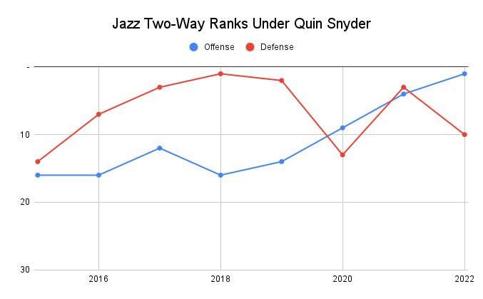The talent infusion worked: The offense improved in each of the past four seasons, from the middle of the pack to the best in the league this season. But at the same time, the defense grew more erratic, falling from a top-two unit in 2017-18 and 2018-19 to the 10th best in 2021-22.