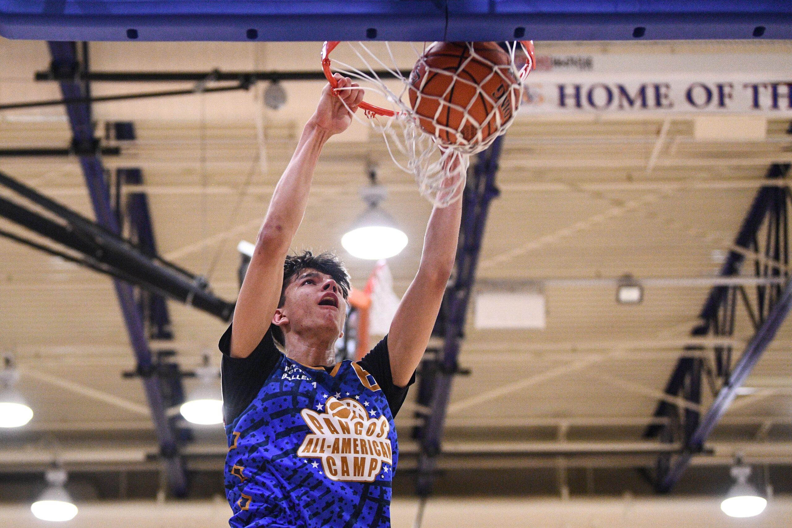 The teen, standing a gangly 6-foot-7, doesn’t seem to hear any of it. He dribbles side to side, staring ahead. He doesn’t break a smile, doesn’t say a word. He is keenly aware that he’s in the spotlight. People know his name. Now they want to see if he’s any good, especially since he recently picked up scholarship offers from Kentucky, Kansas, and UCLA.