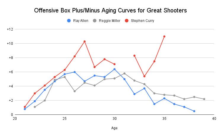 Maybe, with his nonpareil ability to shoot and warp defenses, Curry will end up like LeBron, who has effectively defied the concept of an aging curve for years now.