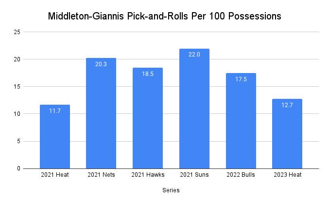 But also blame the Bucks for a lack of creativity and offensive imagination. They played into Miami’s hands and veered away from the sets that had worked during their triumphs of postseasons past; namely, Giannis set only 12.7 screens per 100 possessions for Middleton in this series, per Second Spectrum, just more than half the number he set during the final stretches of their title run two years ago.