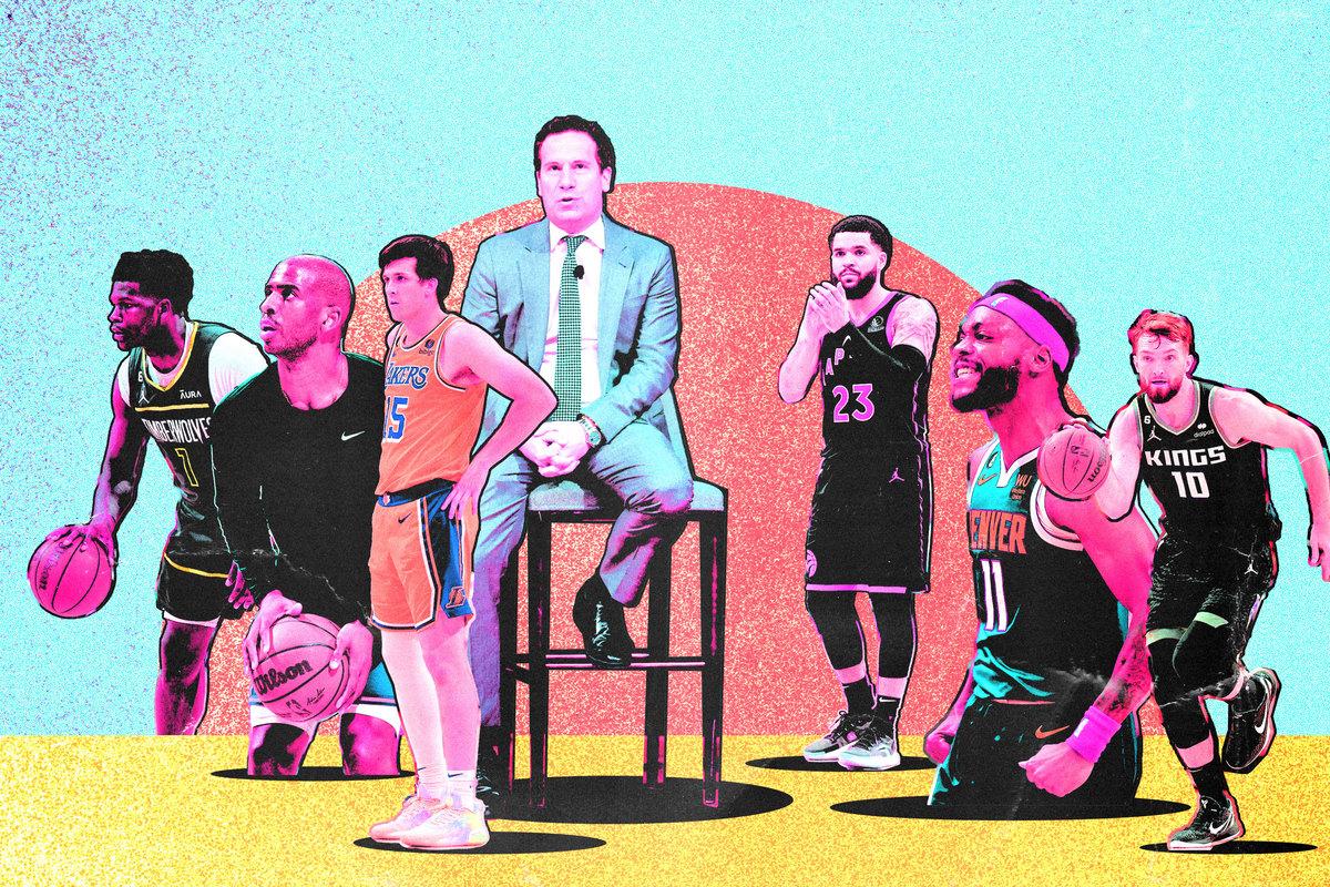 In other words, congratulations to the Rockets, who opened up a ton of cap space for this summer and used it to vault from the West’s 14th place all the way to ... somewhere around no. 12. In summers past, the Rockets might have used all that room to sign genuine difference makers; this year, they had to settle for Fred VanVleet, Dillon Brooks, Jock Landale, and Jeff Green. None of the other teams with ample cap room made big strides either: Detroit used its cap space to trade for Joe Harris’s bloated contract; San Antonio inserted itself into a couple of three-team trades to pick up wings Cedi Osman, Lamar Stevens, and Reggie Bullock; Orlando signed Joe Ingles; and Indiana added Bruce Brown.