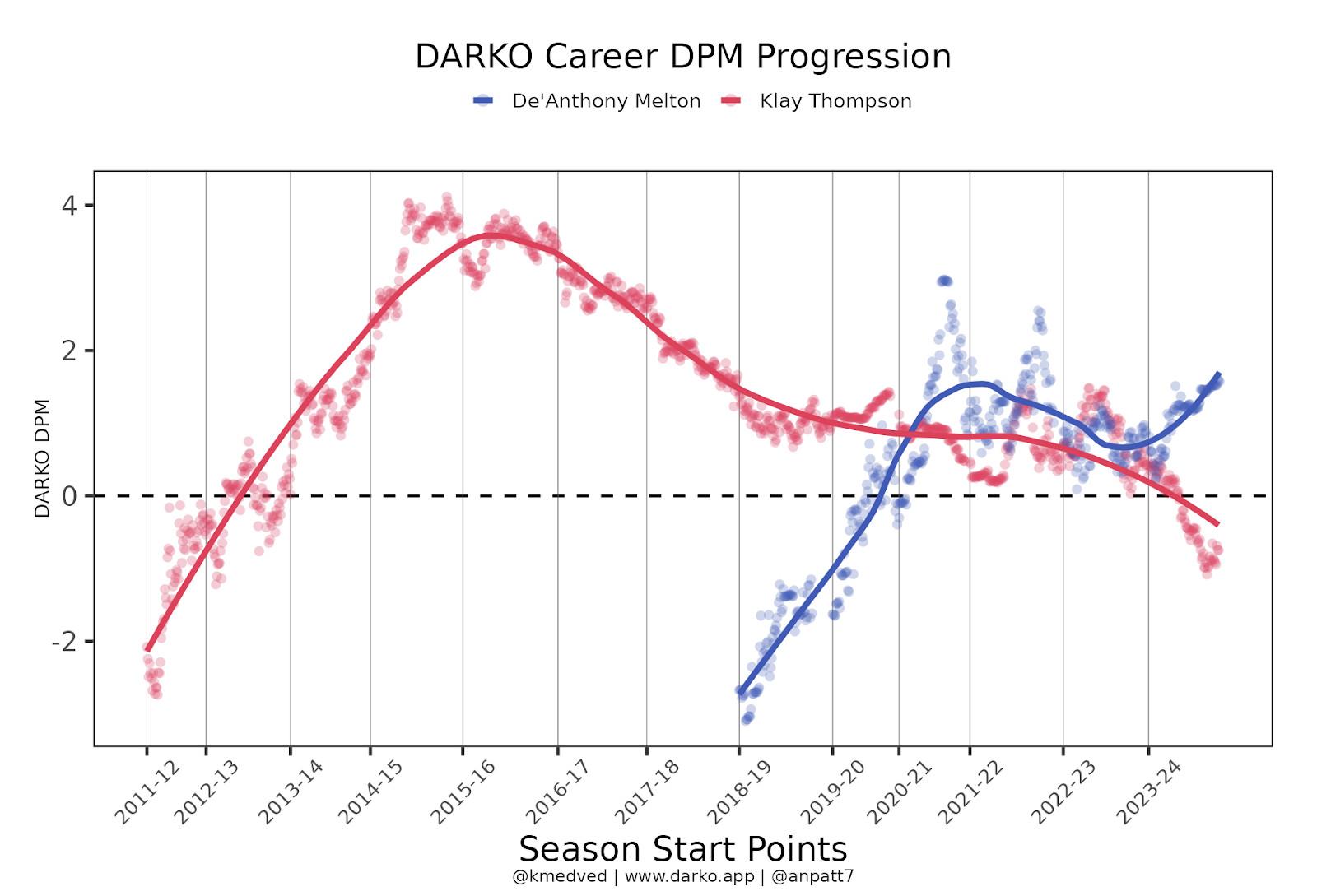 Kram: Set legacies and emotional attachments aside: Is it too soon to say that a healthy De’Anthony Melton is a better player, at $12.8 million over one year, than a 34-year-old Klay Thompson, at $50 million over three years? Advanced stats certainly seem to think that the Warriors got a bargain: