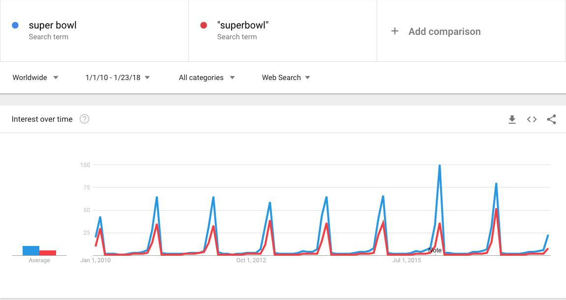 My friends, we are already living in the golden age of the Superbowl, a word that this past Super Bowl/Superbowl season received more than two-thirds as many hits on Google as “Super Bowl.” What time is the Superbowl? the good people of this nation want to know, the ones who’ve had some Bud Light or who only think about the game and its branding once a year or who just generally can’t be bothered to correct/proselytize/fuss/otherwise worry about their space bars—and they find out, of course, as Google gently course-corrects their searches.