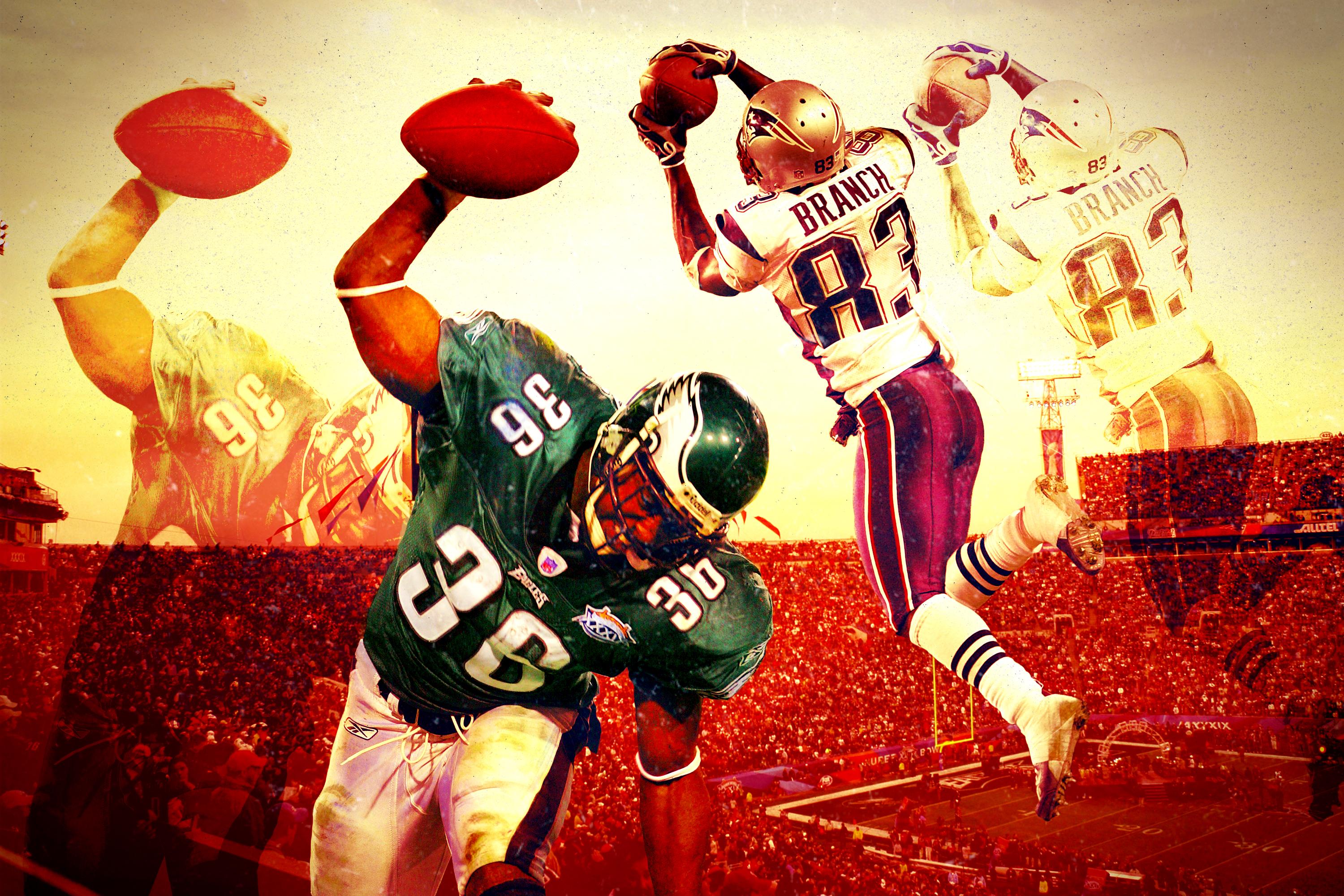 Brady was his normal unflinching, fourth-quarter, game-on-the-line self. Dillon ran with authority. Branch racked up 133 yards and matched a then–Super Bowl record with 11 catches, including this miraculous grab in traffic that helped set up a field goal.