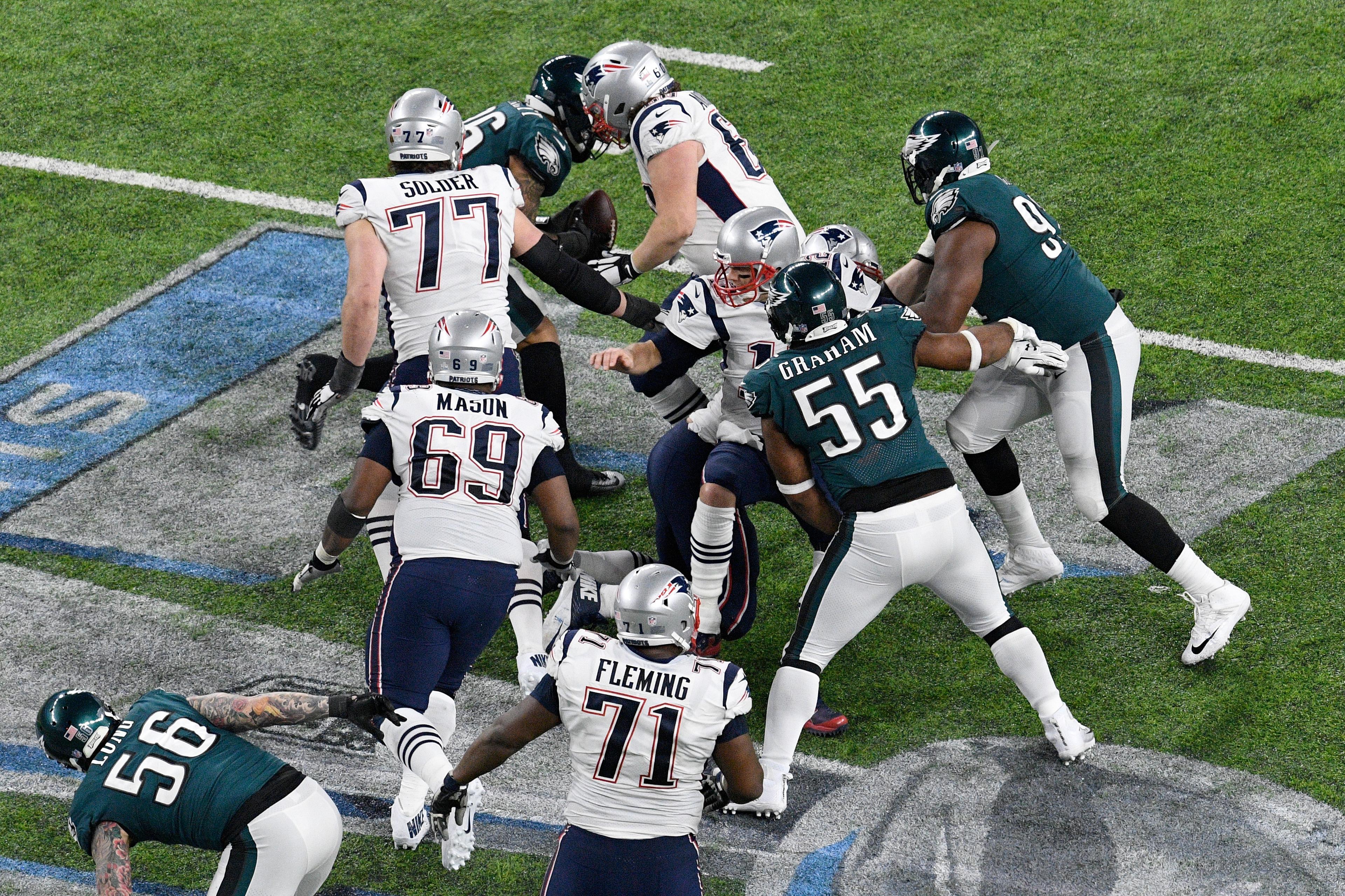 The Brady-Belichick postseason dominance began against Oakland when a would-be strip sack by Charles Woodson was undone by the infamous tuck rule. Sixteen years later, a strip sack—one that counted this time—could serve as a fitting bookend to New England’s dynasty. On Sunday night, the Eagles achieved the rarest feat in modern NFL history: slaying the Brady dragon.