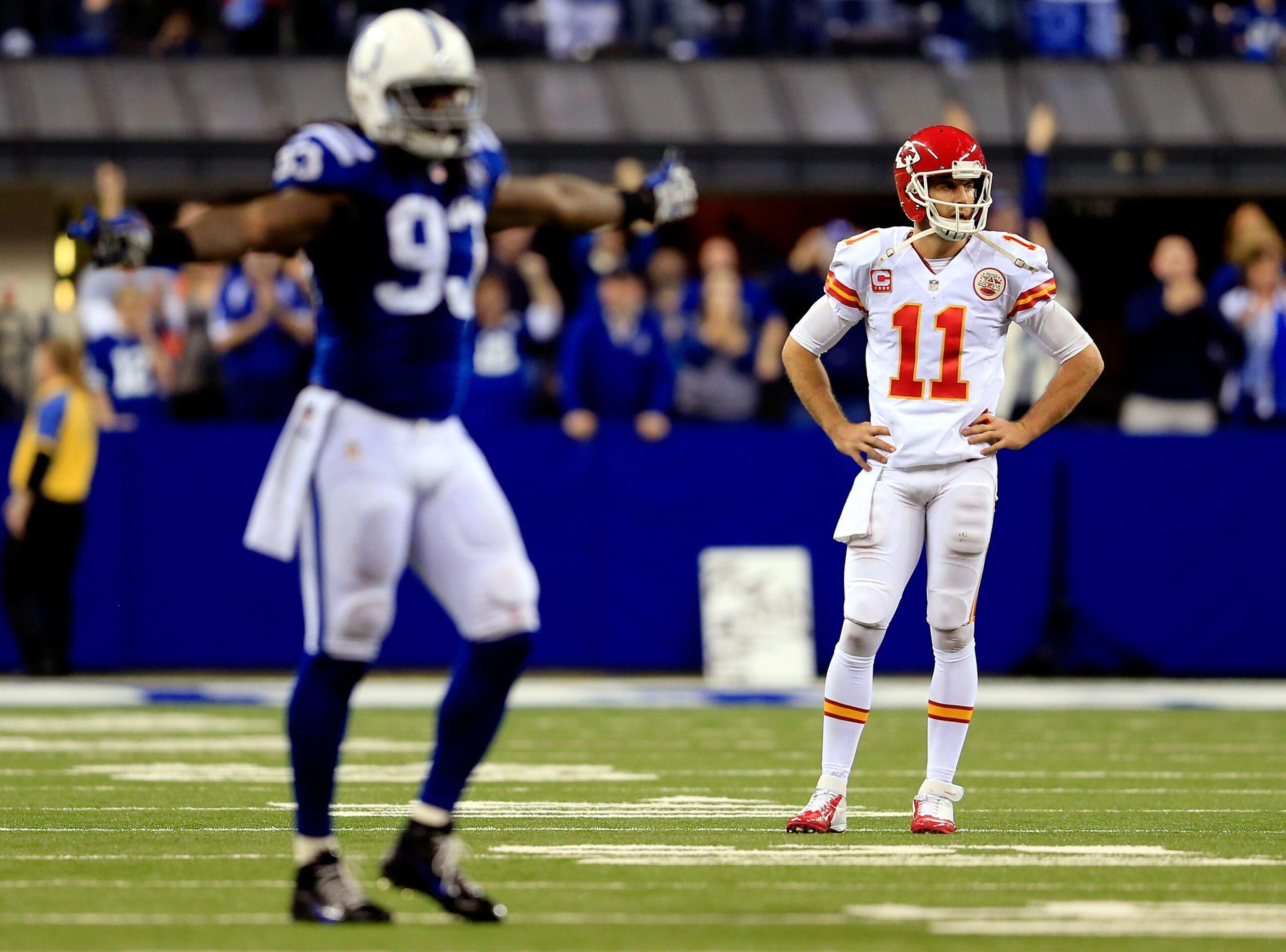 I am visiting my in-laws in Florida when the Chiefs take on the Colts for the fourth time in their last six playoff games. The Chiefs storm out to a 38-10 lead shortly after halftime, and Smith—Alex Smith!—is a one-man wrecking crew, throwing for 378 yards with four touchdowns and adding another 57 yards on the ground. But Jamaal Charles goes down with a concussion on Kansas City’s opening drive, which ends his night. The Colts close the gap to within 10 points by the end of the third quarter. And then, with under 11 minutes remaining, Colts running back Donald Brown fumbles on a second-and-goal … and Andrew Luck is somehow there to not only scoop up the ball, but also to run it in for a touchdown. The Chiefs still lead by three, but the ending feels preordained. I had seen this movie too many times to not know how it ends. Luck throws a 64-yard touchdown to T.Y. Hilton with 4:29 remaining to give the Colts a 45-44 lead. Smith leads the Chiefs down the field in the waning minutes, but the drive stalls at the Colts’ 43-yard line before a turnover on downs. It is the second-largest playoff collapse in NFL history.