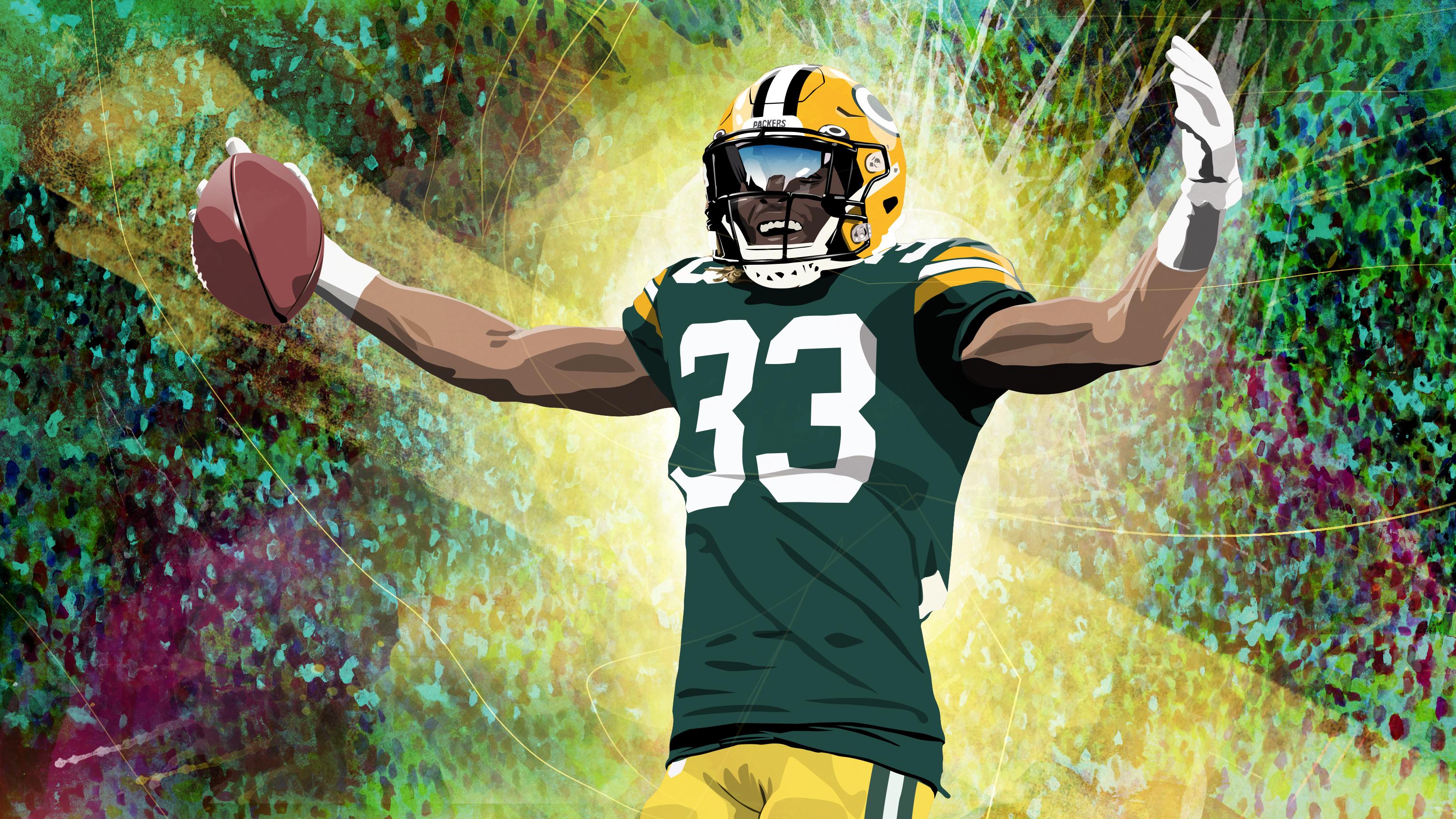 Jones missed the early part of training camp with a lingering hamstring injury, so first-year offensive coordinator Nathaniel Hackett had to wait a bit to see him at full speed. And Hackett wasn’t sure what to expect. “He’s not the biggest guy,” Hackett says. “So you sit there and you say, ‘What kind of player is this guy gonna be?’” Without Jones or Williams (who was also nursing an injury) on the field early in camp, Green Bay’s new offense looked stuck in slow motion. “[The day he came back] it was a dramatic change of burst and speed,” Hackett says. “That infusion … we’re a brand-new staff trying to figure things out, and then all of a sudden, it’s like, ‘Oh! OK! I’m good with this!’”