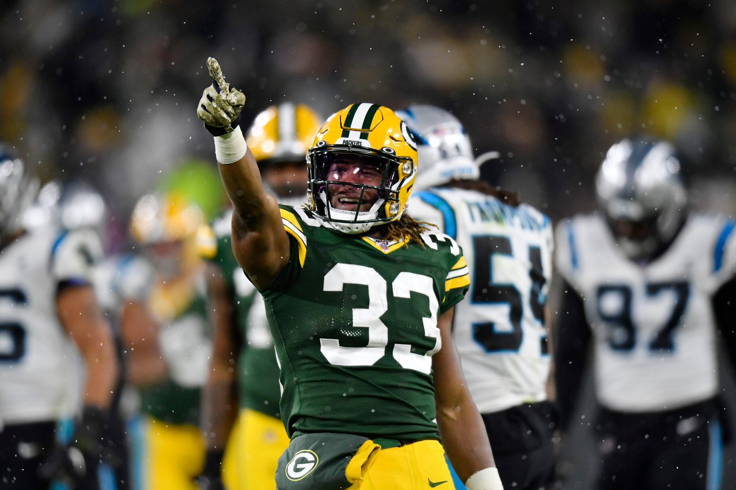 As a rookie in 2017, Jones finished second in rushing DVOA among players with less than 100 carries. Last season, he led the league in yards per rush (5.5) and finished sixth in Football Outsiders’ success rate. “Just because he’s a smaller back, people think he’s not strong,” says teammate Jamaal Williams. “Aaron runs through a lot of tackles. Even when you have him in the backfield, he’s always getting [yards].”