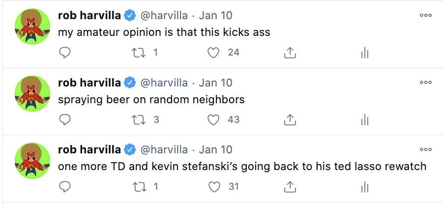 Forgive me and my fellow Browns fans as we revel in what is, for a great many other NFL fans, the familiar and even mundane sensation of making the playoffs, and winning a game in the playoffs, and gearing up to play another game in the playoffs. No idea how you Packers fans, or Saints fans, or (booooo) Ravens fans handle this. What does not appear newsworthy or even all that noteworthy to you is, to us, an ultrarare and joyously cataclysmic event, a total solar eclipse. I spent Sunday swigging Emergency G&Ts and bulk-tweeting the dumbest crap imaginable. Look at this. This isn’t even close to all of it.