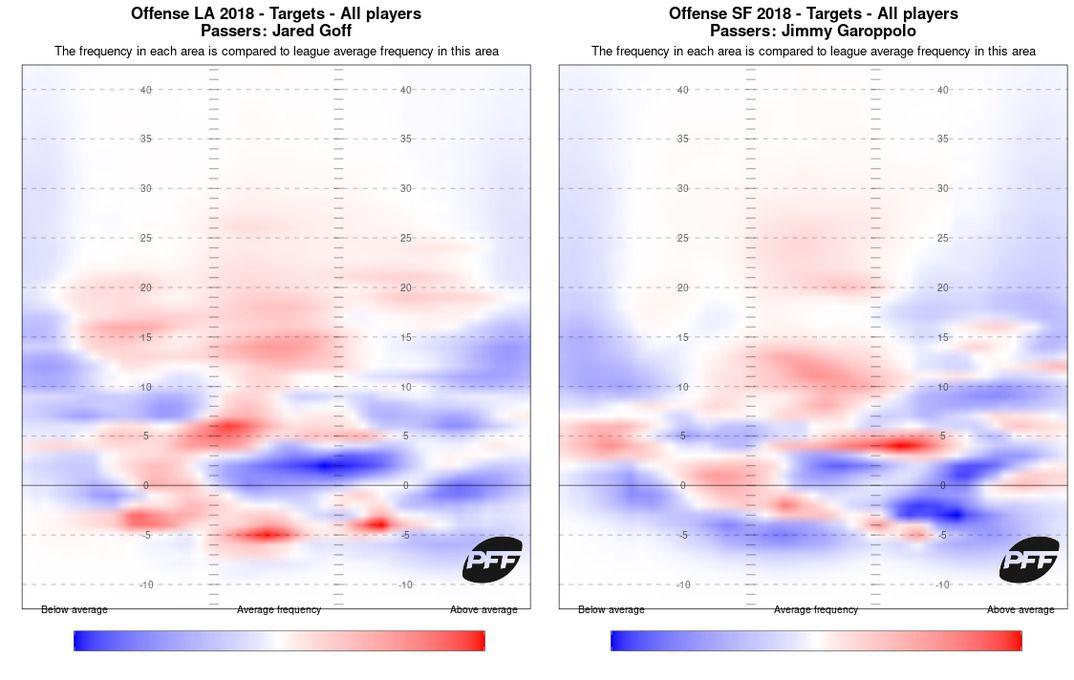 As the running games evolved, the passing games for both offenses were suddenly put in jeopardy. When the teams were running wide zone with impunity, Goff and Jimmy Garoppolo had nearly indistinguishable passing charts …
