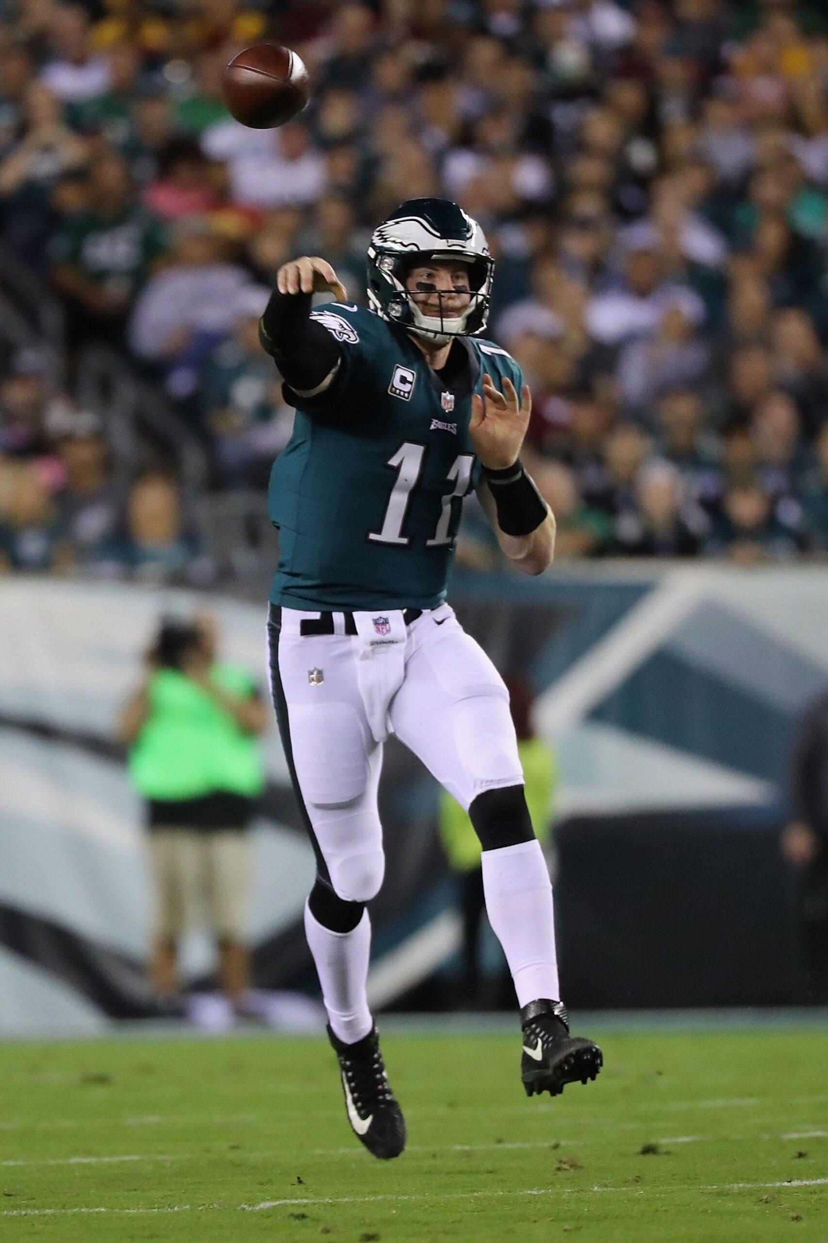 In 2017, Wentz hasn’t just been good—he’s been one of the best quarterbacks in the NFL. He continued his breakthrough campaign by turning in a brilliant performance in a 34-24 win over Washington on Monday Night Football, going 17-of-25 passing for 268 yards with four scores while pushing the Eagles to a league-best 6-1 record. He leads the NFL in touchdown passes (17) and has thrown just four interceptions; he’s fourth in yards per attempt (8.0) and passer rating (104.0). There is serious Wentz-as-MVP talk. The Wentz Wagon is so full that if you tried to try to float it across the river in Oregon Trail, this would happen.