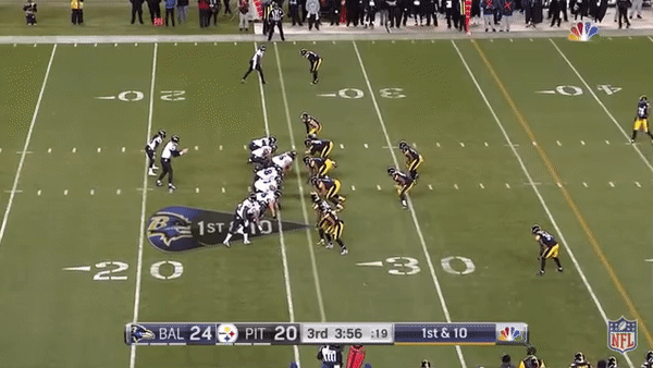 Shazier’s absence was clear from a football standpoint, too. The fourth-year linebacker was having a career season before he got hurt last Monday, and the change from Shazier—who ran a sub-4.4-second 40-yard dash at his pro day and who might be the fastest linebacker in football—to players like Arthur Moats and Sean Spence in the middle of the Pittsburgh defense was colossal. Baltimore running back Alex Collins finished with 120 yards on just 18 carries and routinely tore off gains of 7, 8, and 9 yards. He also sprinkled in a few monster runs.