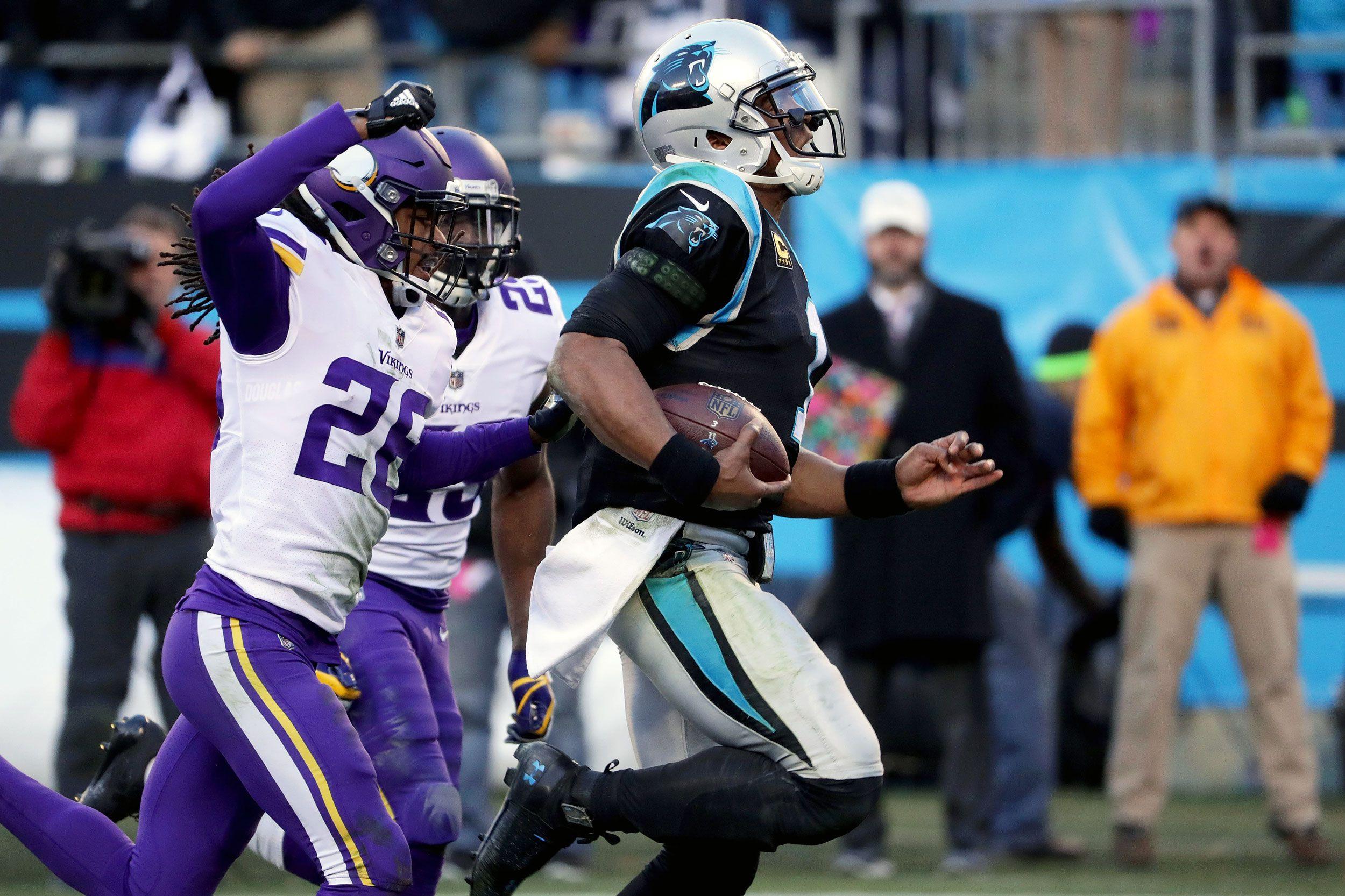 1. The Panthers’ win over the Vikings showcased why they’re a legitimate NFC threat. Carolina showed all the elements that make it dangerous on Sunday, starting with the defensive line. It tormented Case Keenum, hitting him seven times and collecting six sacks, and those totals could have been higher had a few unblocked blitzers not gone sailing past the Minnesota quarterback in the backfield. Mario Addison, Julius Peppers, and Kawann Short took full advantage of an offensive line that was missing three starters at one point. When the Panthers’ front four plays like this, the other holes in their defense are barely visible.
