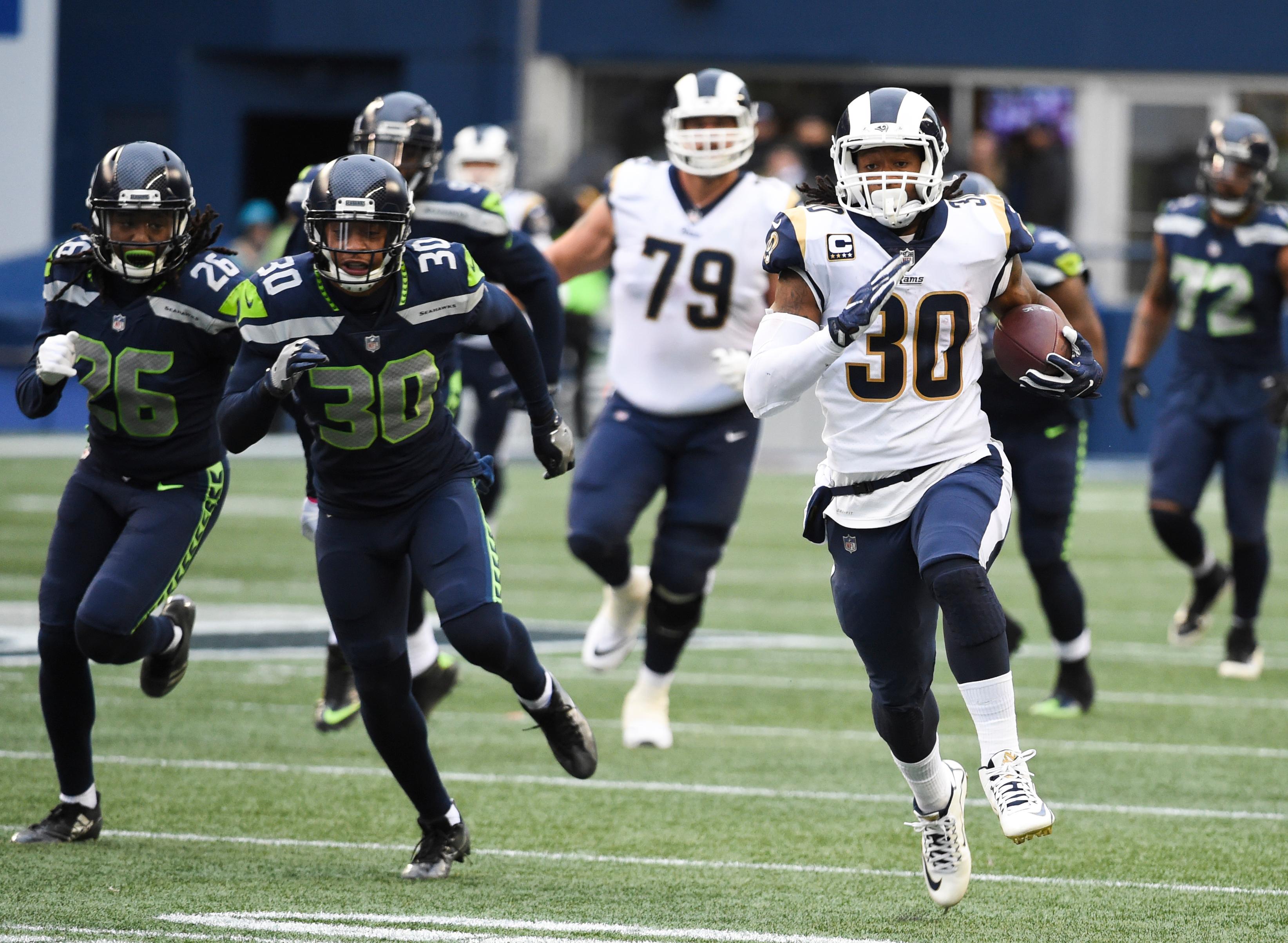 Gurley looked like a hologram running through real people. This run looked like he was timing himself for the 57-yard dash as he ran past the entire Seahawks defense in a straight line.