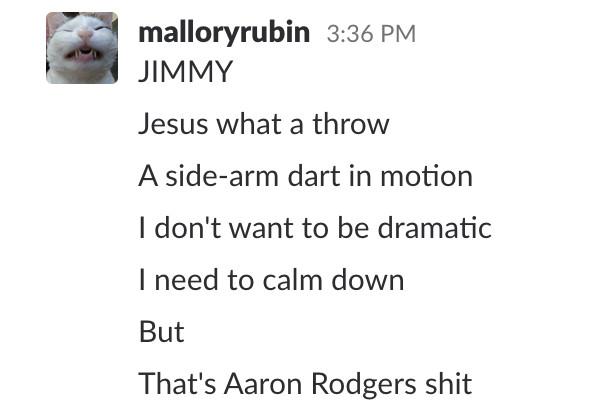 It’s one of those moves that seems like it shouldn’t be allowed, and it’s what already separates Garoppolo from all but a handful of guys in the league. As Ringer deputy editor Mallory Rubin wrote in The Ringer’s NFL Slack:
